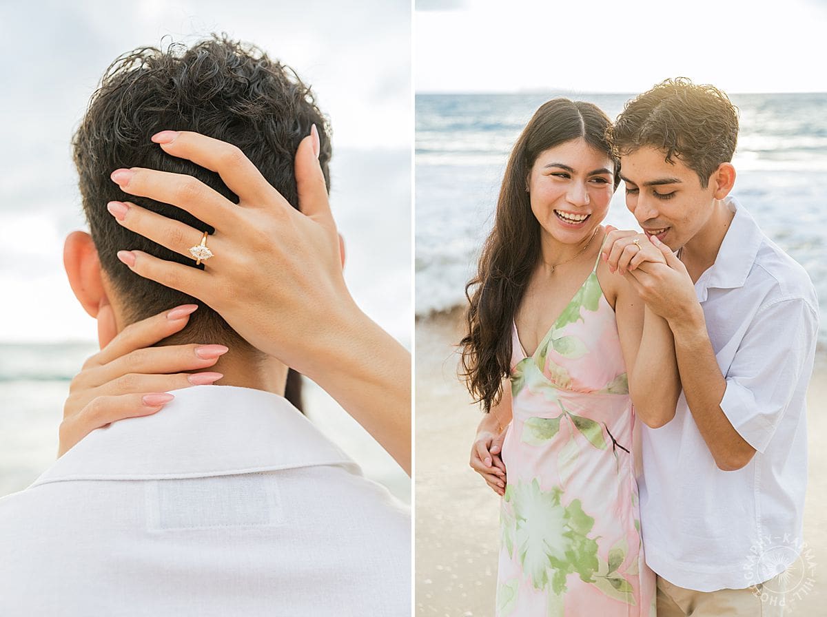 Her reaction was instant and beautiful, surprise written all over her face! She said yes without hesitation, joy spilling over as the waves quietly applauded behind them. It was tender, genuine, and perfectly them.