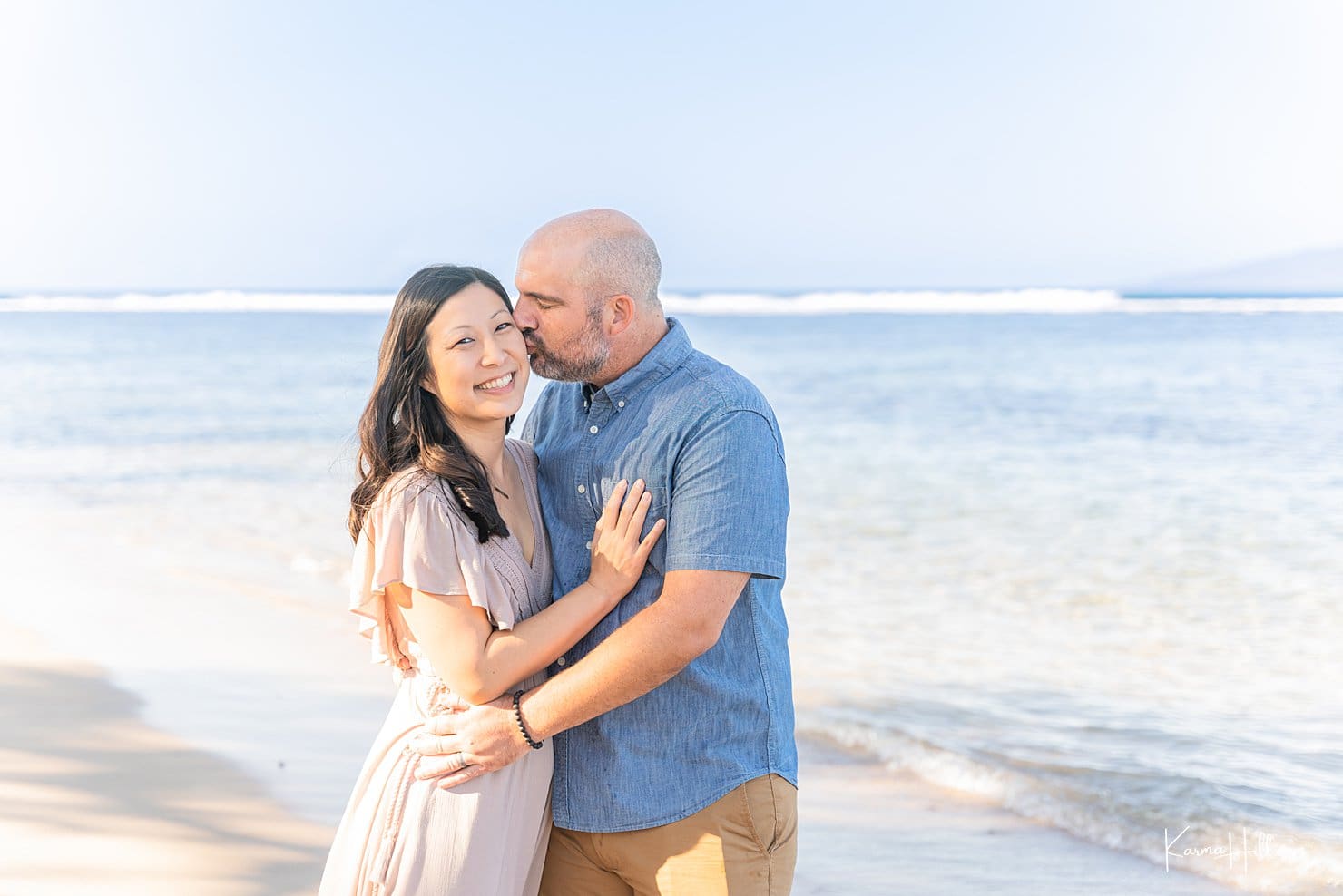 This was the first time they visited as a family! They were so excited to show the island to their sweet daughters, Makena and Cameron! We love their matching aloha dresses! Then, they walked down to the shore to play in the gentle waves… we were there to photograph every moment! Our beautiful family loved showing the girls the beach!