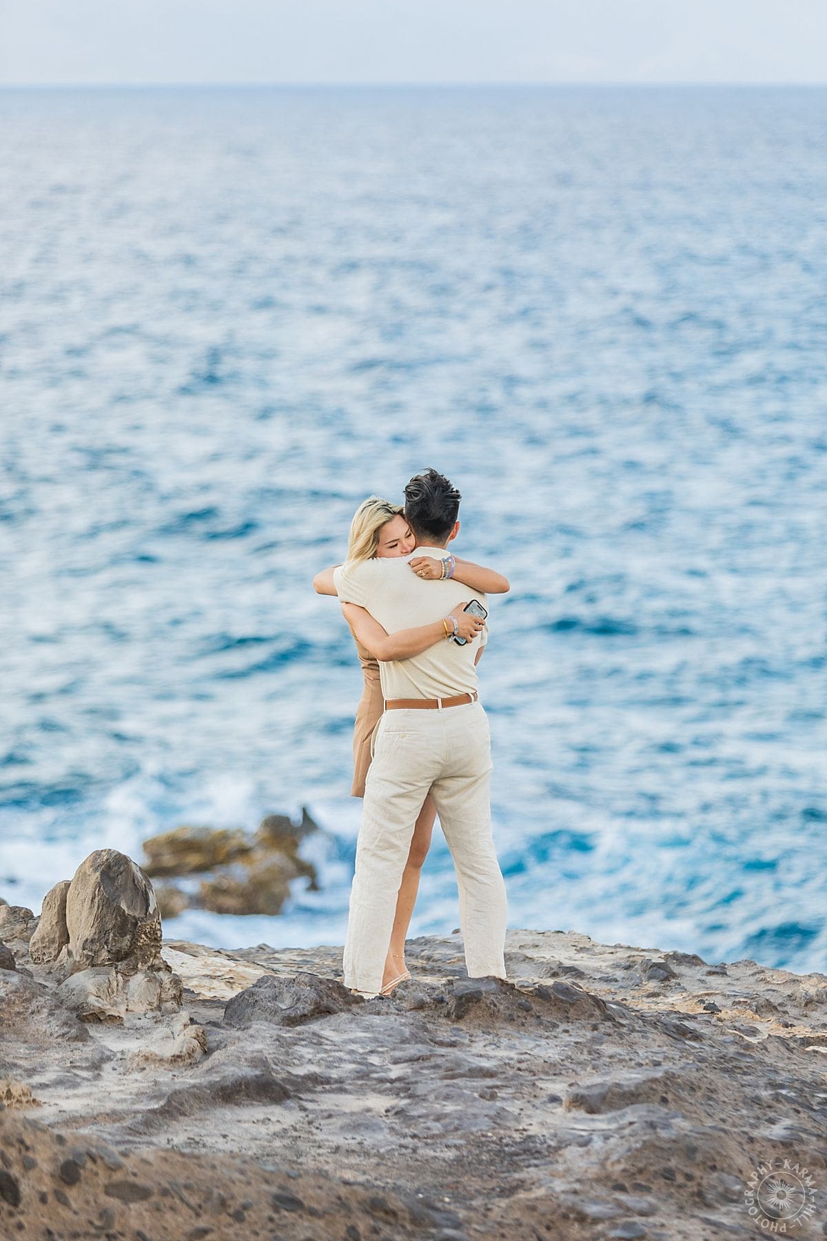 Echo had no idea what was coming. One moment, they were simply enjoying a walk along the cliffs; the next, she turned around to see Kaiyi kneeling, the ocean wind catching her hair, and the softest look of surprise lighting up her face. Her “yes” was pure joy, the kind that can only come from knowing you’ve found your person!