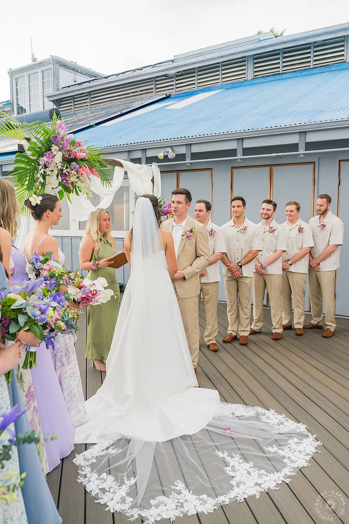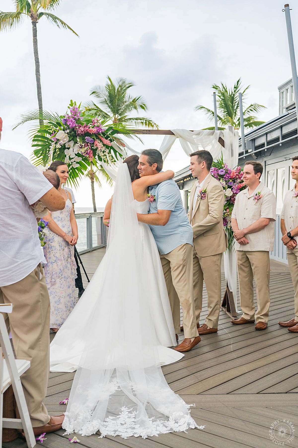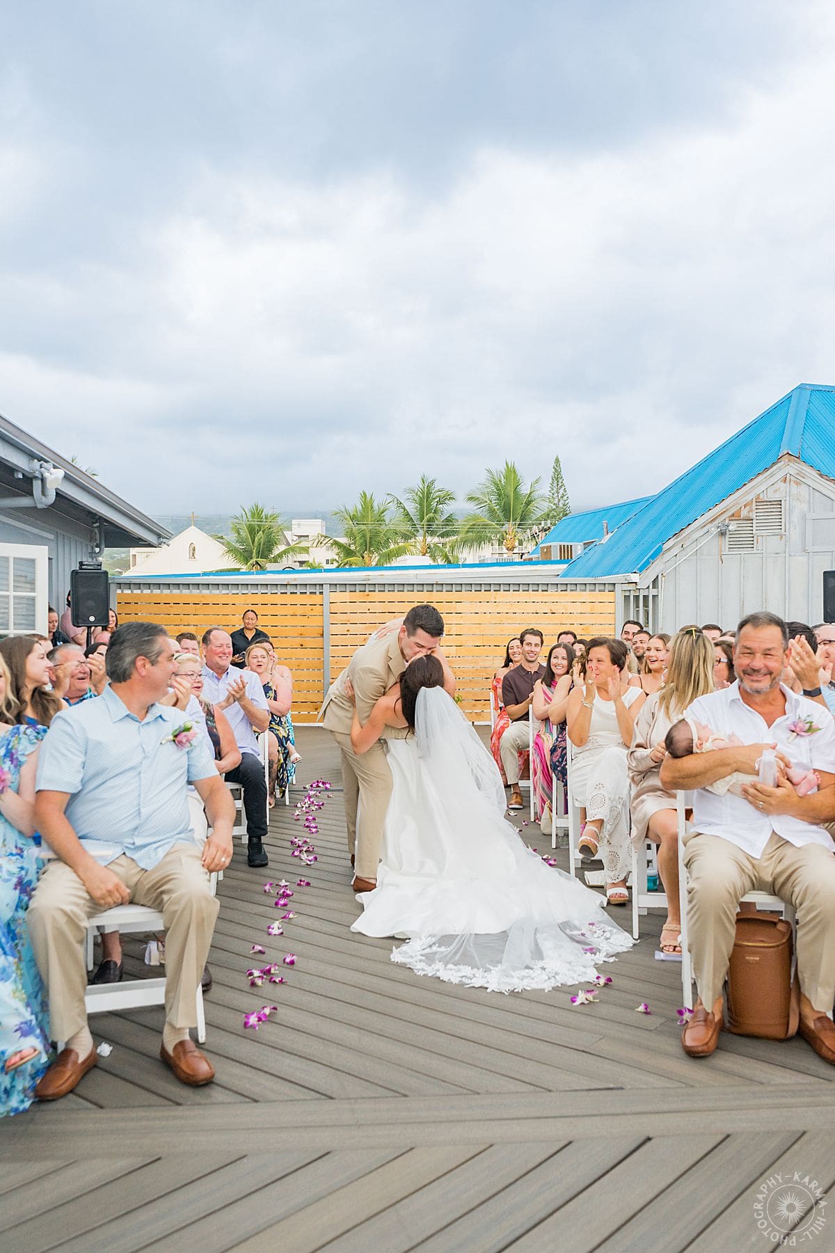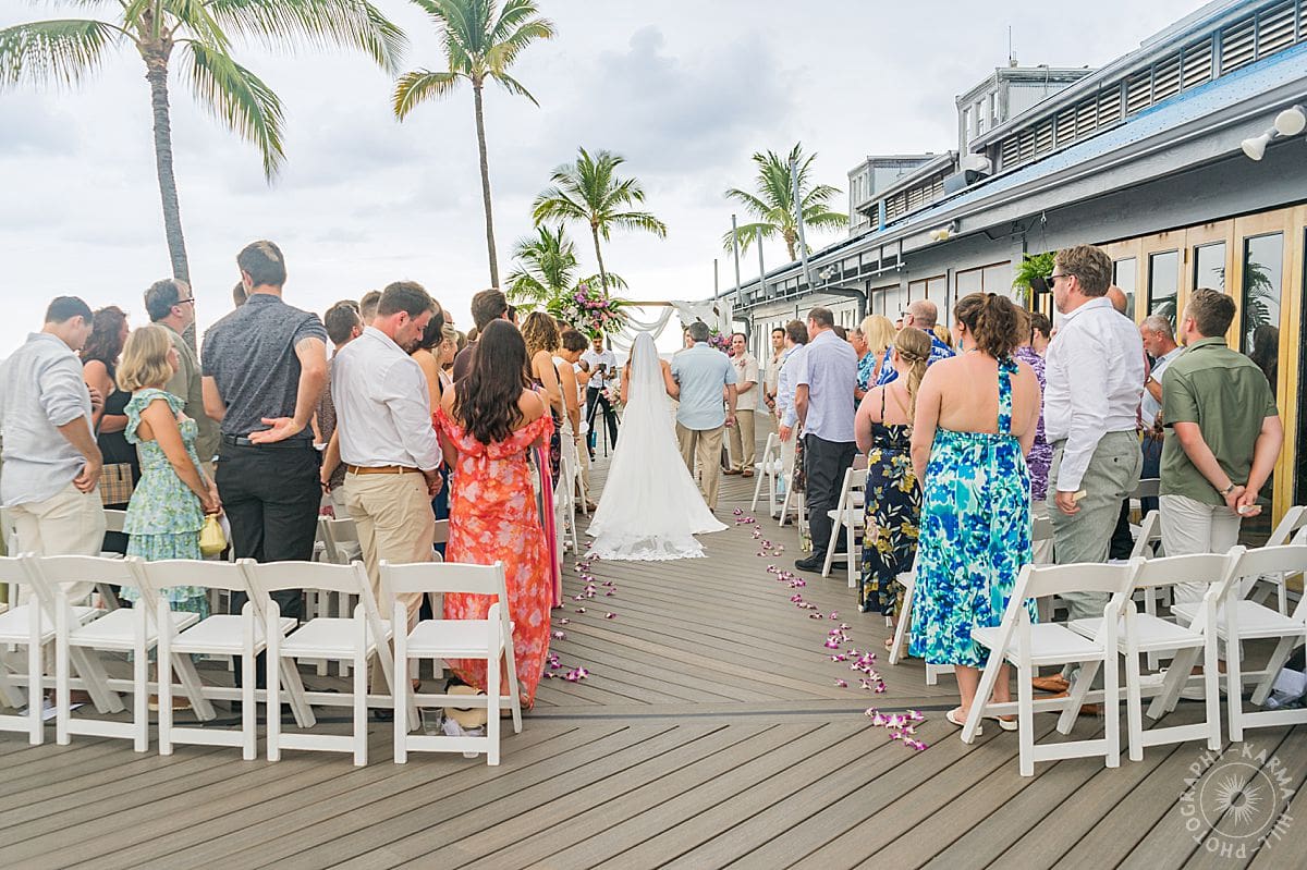 Their Big Island wedding photography continued at the stunning Papa Kona venue, which was serving major tropical romance. The flowers were lush and vibrant, the view was amazing, and their people showed up in full force. The ceremony was everything, sincere, warm, a little funny, and totally them. You could feel how much it meant.