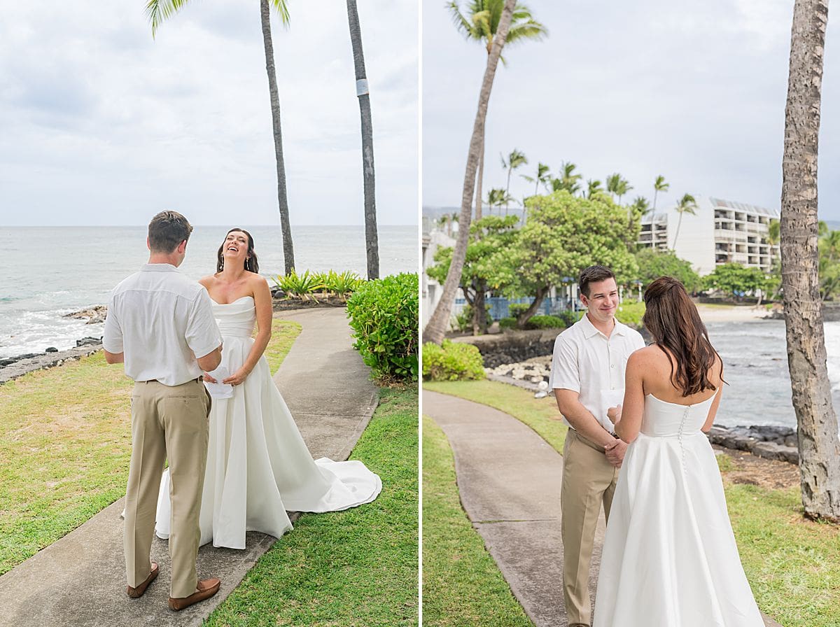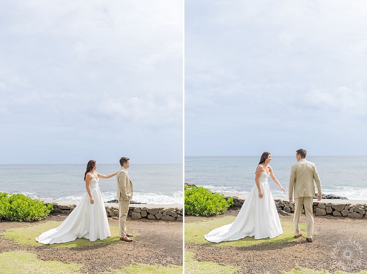 Then it was time for the first look. Chip was waiting oceanside, looking equal parts nervous and excited and like he knew the best moment of his life was about to walk up behind him. And when Lauren tapped his shoulder and he turned around? They were all smiles and soft “oh my gosh you look amazing” and laughter and “let’s do this thing!” vibes. It was an intimate moment just for them to savor.