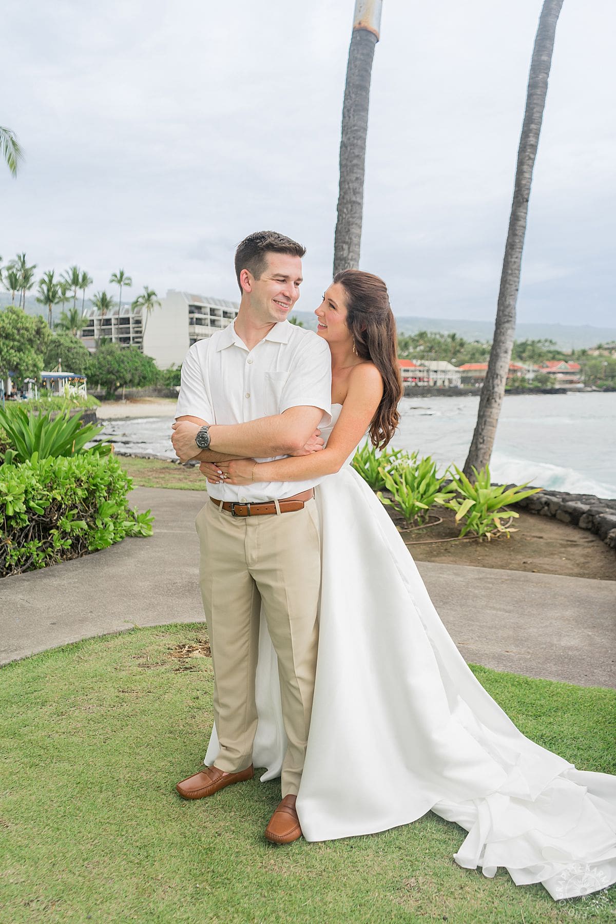 Okay, so first things first before we share their Big Island wedding photography: Lauren and Chip are the kind of couple who make you believe in fate. Like, middle school sweetheart fate. We’re talking notes passed in class, prom dates, a little “finding ourselves” break in college (because, life), and now? Forever-ever kind of love. The best kind. The real kind. The kind that laughs a lot and gives big hugs and still can’t believe they get to marry their best friend.