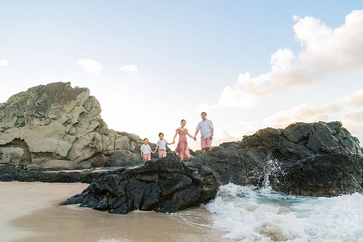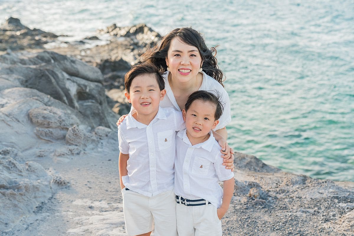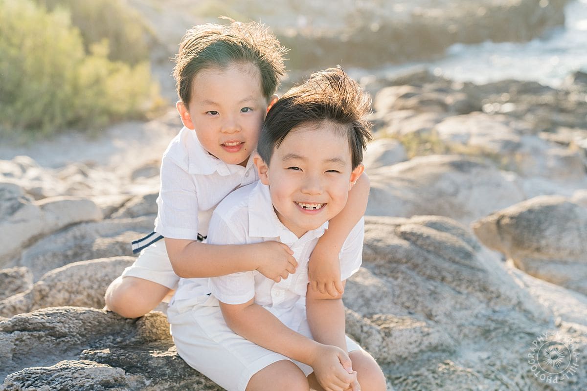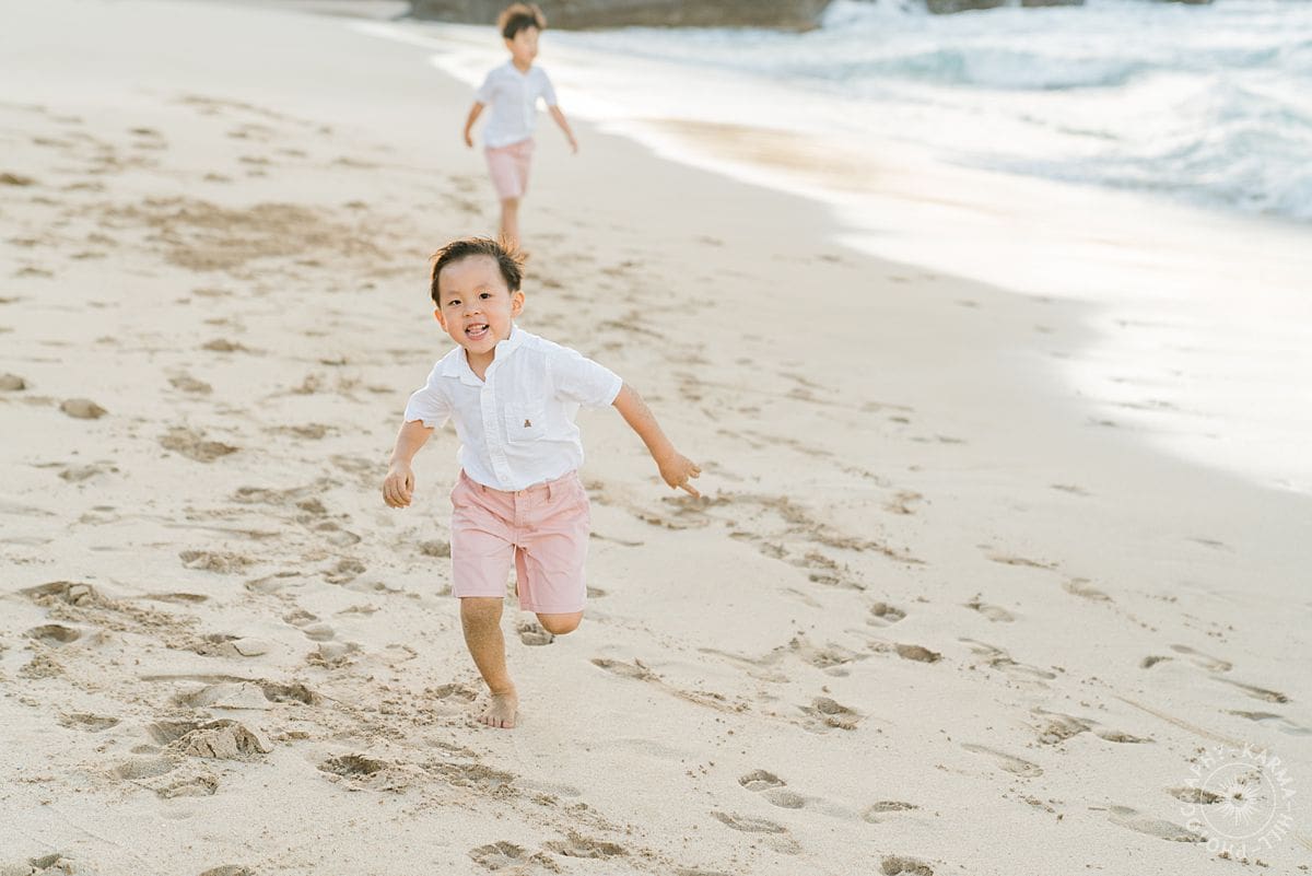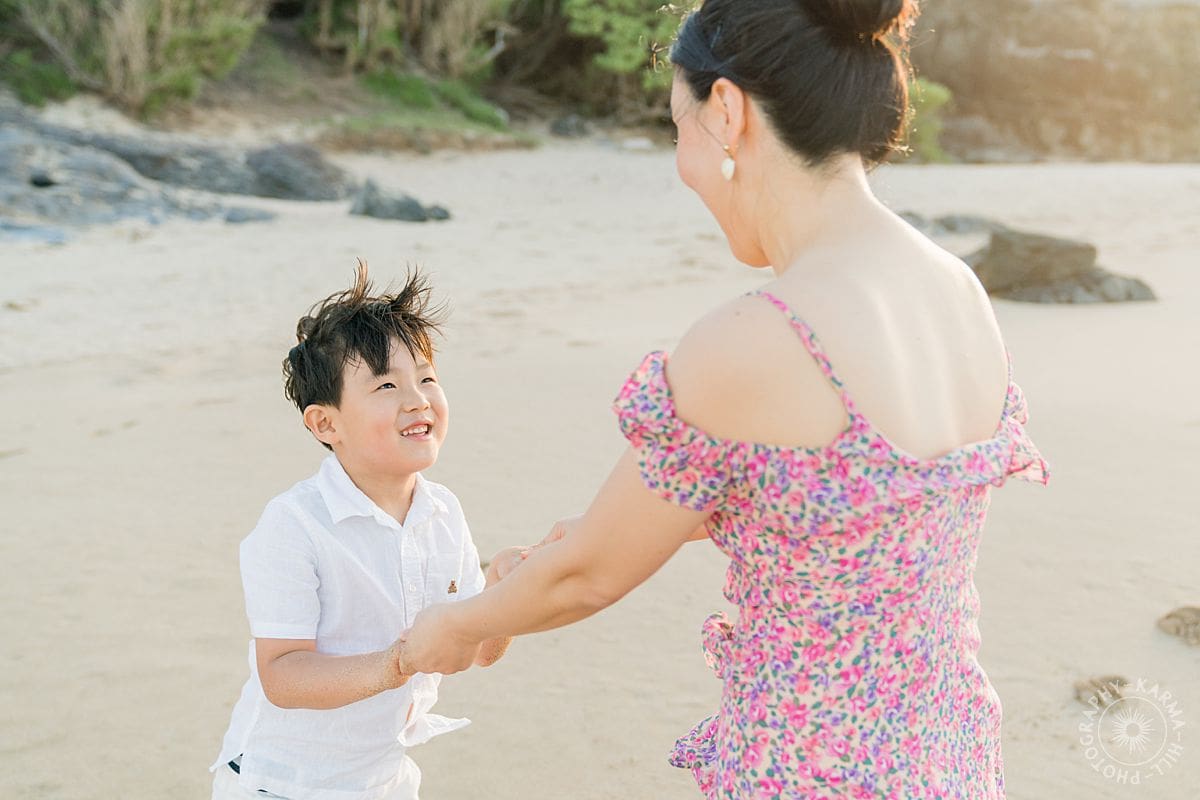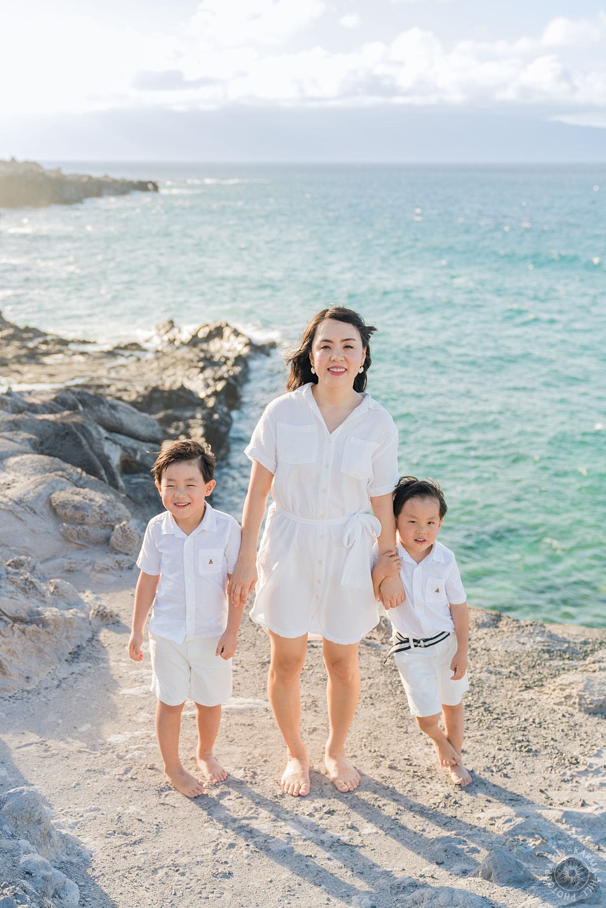 The Lee family showed up to their Maui family portrait session with three energetic boys, and from the very first frame, you could see it: love, light, and laughter. At Ironwoods Beach, the evening sun poured gold over the shoreline, and their portraits reflected every bit of it.