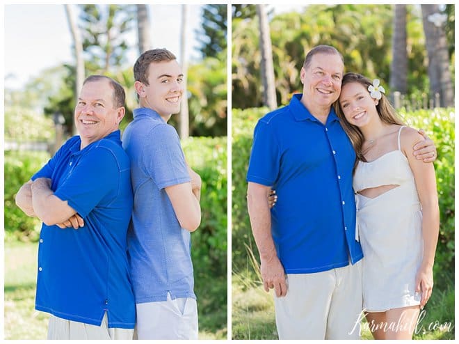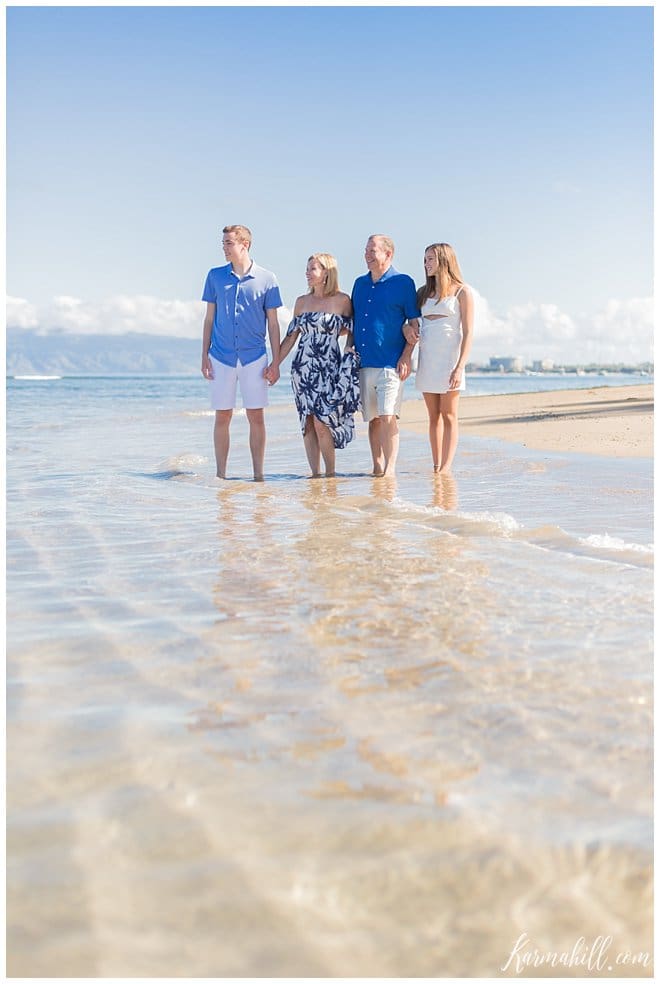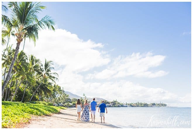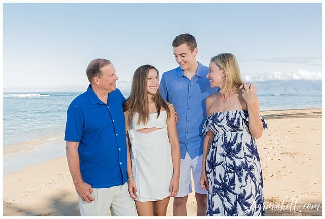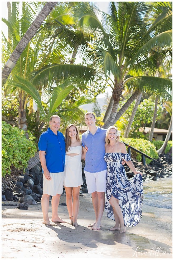 Ready to update their Maui Family Portrait collection, we were so excited to welcome back the McKnight Family. Ditching the June gloom of California for a little fun in the sun, the fabulous foursome was more than ready to hit Hawaii again. Seeking the bright blues that Maui mornings offer, they chose a spot different from their last session to get a little variety. The day was as fabulous as they come with the picture perfect setting and weather. The sparkling sea was a stunning shade of crystal clear.