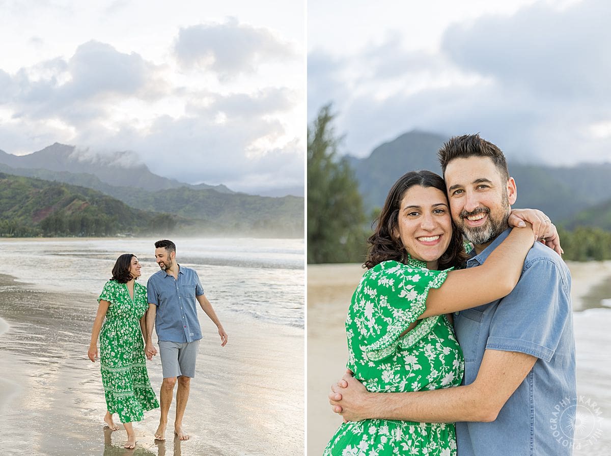 Hanalei Bay delivered in every possible way. Towering emerald mountains rose dramatically in the distance, mist rose from the ocean, and the curve of the bay wrapped everything in a sense of calm and grandeur all at once. It’s the kind of backdrop that feels almost cinematic. It was epic without being overwhelming, and it set the perfect stage for a session rooted in connection and nostalgia!