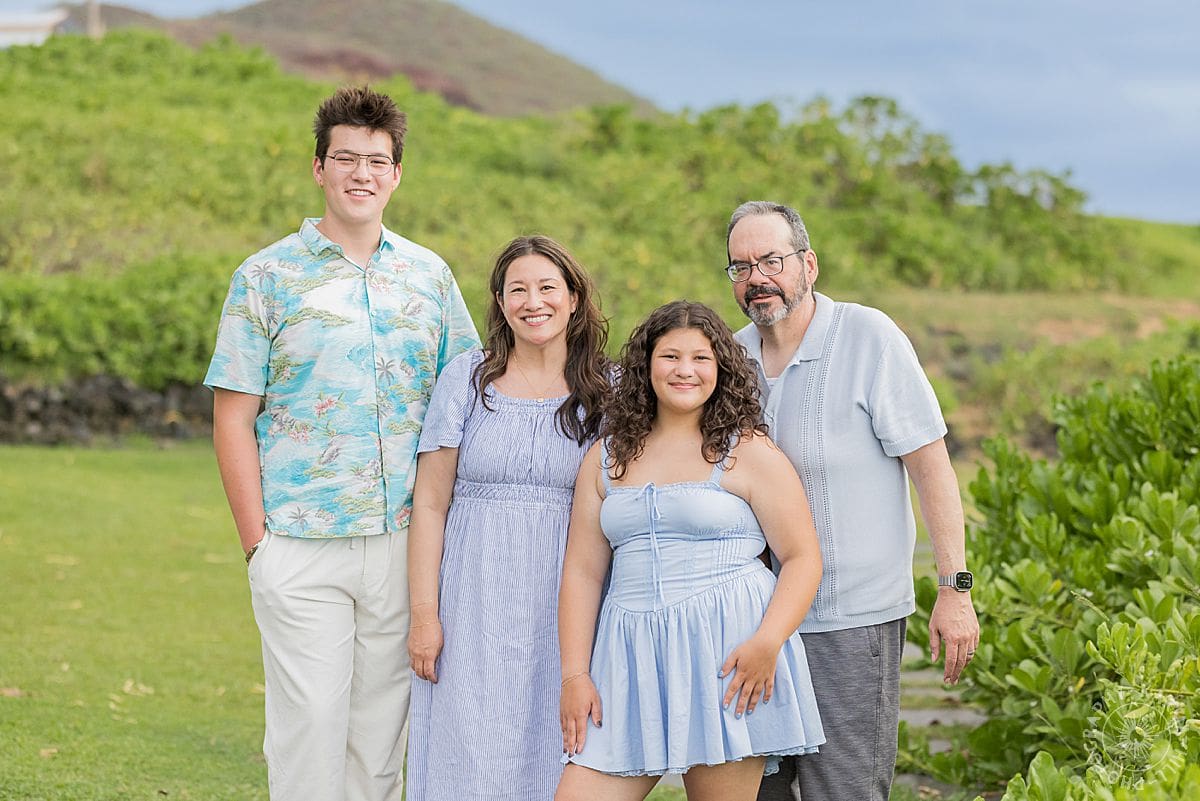 With family on Oahu and busy lives back home, it had been far too long since their last family photos. Liam, a talented saxophonist in the thick of band activities, is preparing to apply to music school next year. Emma, heading into 8th grade, splits her time between ice skating and caring for her middle school’s resident goats and chickens. And John and Bianca? They’re juggling work, kids, and three family dogs, doing their best to keep up with it all! We know how that is!