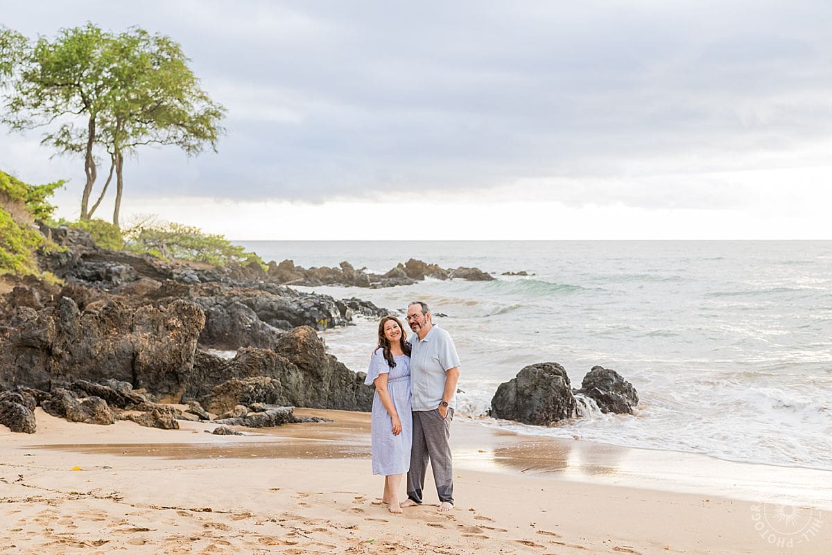 We continued their session by the ocean, the waves rolling in behind them while they laughed and leaned into each other. Then we moved to the soft sand, arranging the family in relaxed, easy groupings that still had plenty of room for natural smiles and spontaneous moments. The light at Maluaka was soft and perfect, wrapping them in warmth without stealing the show.