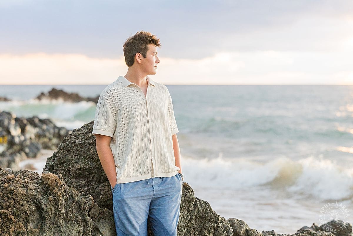 And we took some more senior portraits for Liam when the sky opened up! He brought his quiet confidence, his easy smile, and that spark of someone ready to step into the next big thing. Against the ocean backdrop and with the golden sun dipping low, they were the kind of shots destined to win “Best in Class.”