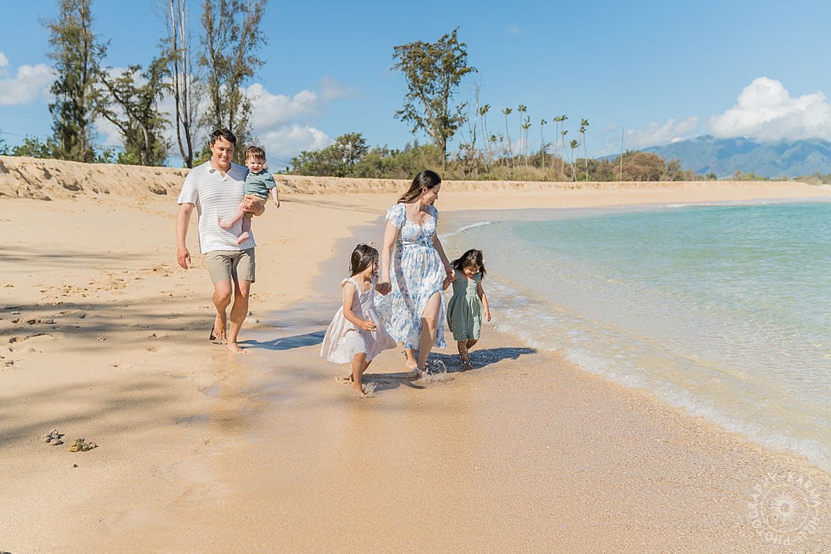 A Maui family portrait session with the Day family? Yes, please! First of all, let’s set the scene: Baldwin Beach, bathed in soft morning light, with gentle waves humming nearby and golden sunbeams kissing the sand. Now add one adventurous family of five from San Diego—Andrea, Patrick, and three absolutely adorable little ones (Victoria (4.5 yrs old), Charlotte (3 yrs old), and Emmett (1 yr old), and you’ve got a morning that’s as heartwarming as it is beautiful.