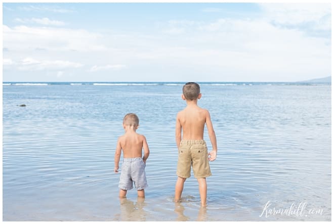 With no shortage of things to do and try, the boys absolutely loved going on the submarine tour the best. At five and two years old, respectively, it was a mesmerizing adventure that incited their curiosity and wonder of the deep. The sea was practically calling their name throughout our time with them and there was no hesitation to get some toes wet. Blessed with a beautiful morning on Baby Beach, the blues were brilliant and the setting a dream come true. We are so glad they were treated to this fabulous family bonding time. We should all be so lucky as to have a month in paradise together. Thank you, Mortensen Family, for choosing Karma Hill Photography to capture this moment. We love that you took the time for fun in the sun together and, we can admit, we are slightly jealous! ;o)