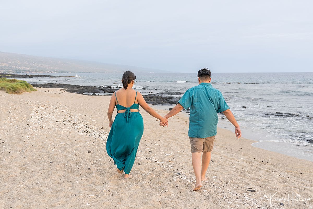 Whether they were walking side by side, sneaking a playful glance, or just soaking up the island air together, each couple radiated connection and comfort. There were sweet in-between moments and full-on romantic glow, all wrapped up in that effortless Kona sunset magic. Add in a little sand between their toes, and boom—tropical couple photos unlocked.