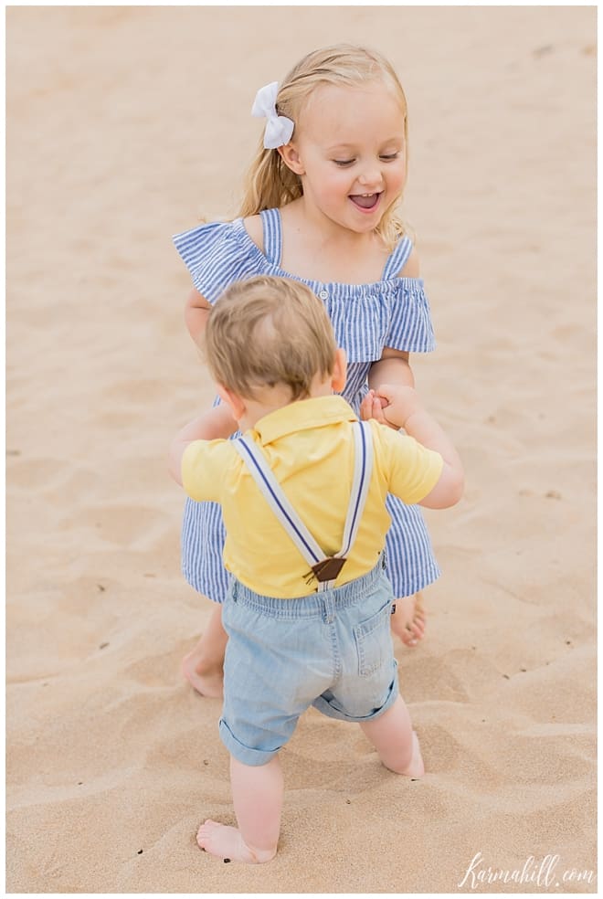 Nebraska natives, the Murphy Family, were so thrilled to return to the island where their marriage first took flight. Having had their wedding here two years ago, it was a wonderful idea to have Maui Family Portraits taken with the smiling faces of their beloved little ones. Capturing the delight of Raylen and Leo was our pleasure! At three and one, respectively, they have no shortage of personality. Loving the beach, they were both having a blast by mom and dad’s side.