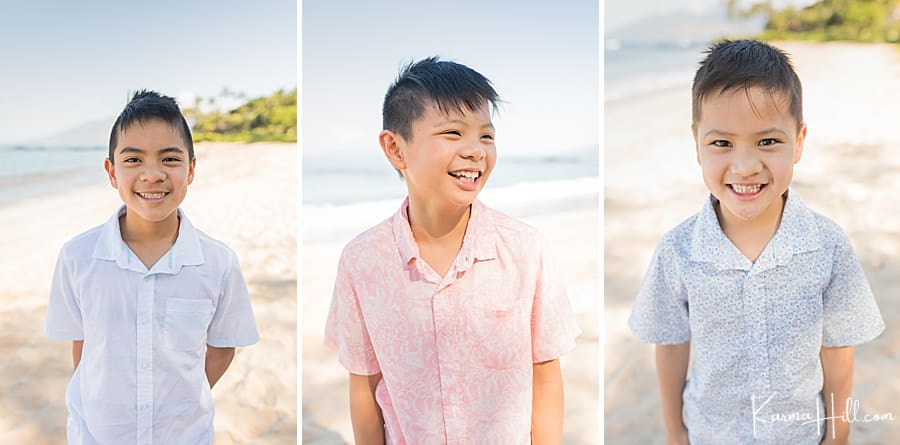 Southside Beach is one of our top sandy venues for Maui Beach Portraits because of its variety of tropical backdrops. Featuring an expansive view of the aquamarine ocean and powder-soft sands, this was the perfect local for our sweet family. We loved capturing the boys’ wild energy against the glistening landscape.