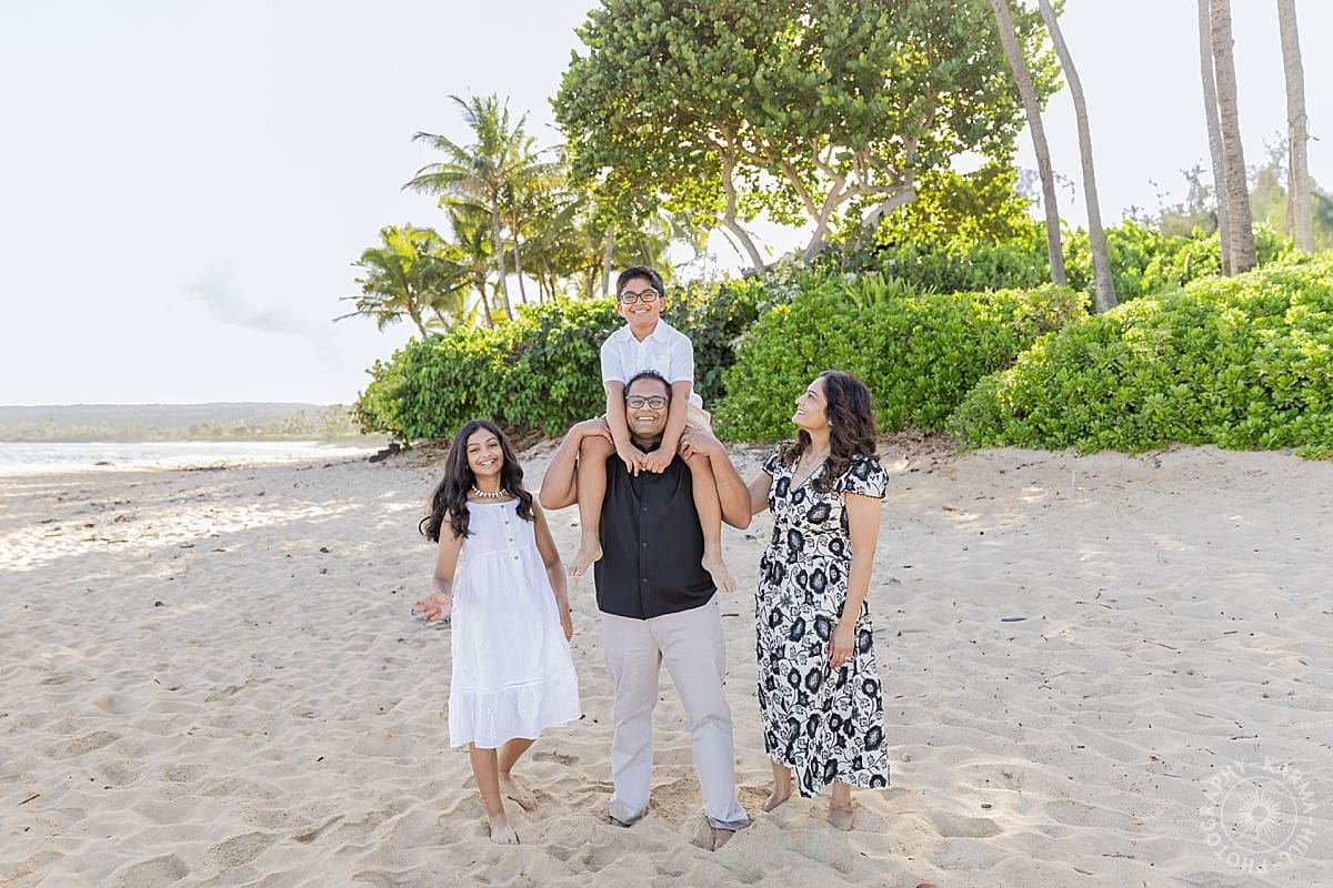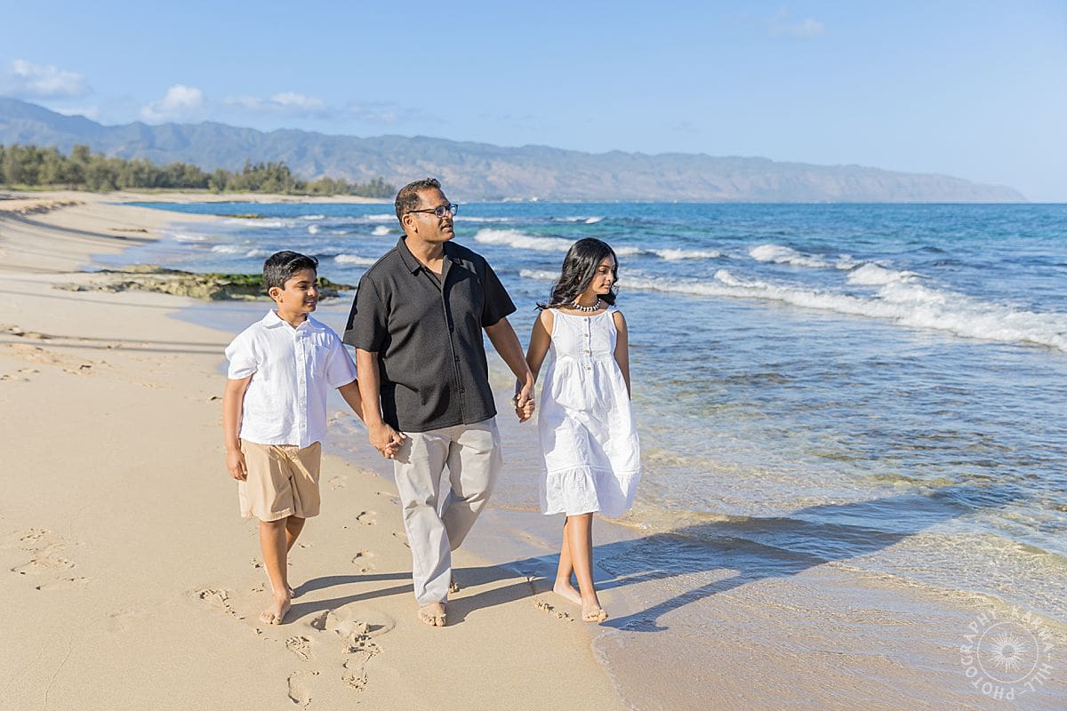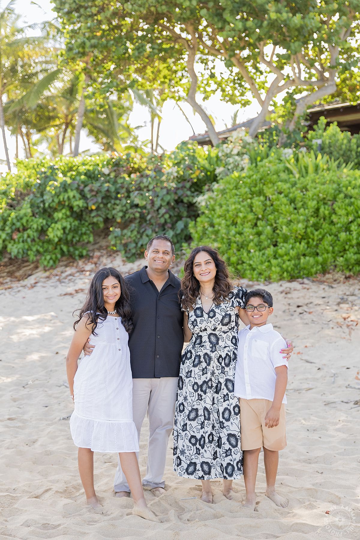 The Parikh’s Oahu family portrait session at Papa’iloa Beach was the perfect mix of fun, relaxation, and memory-making magic. Visiting from Ohio, this was their very first trip to Oahu, though they’ve already fallen in love with Hawaii through past visits to Maui and Kauai. For the kids, it was especially exciting; it was their first time in the islands, and the sheer joy of trading school days for sandy toes was written all over their faces! Keep reading to see more of their amazing morning session with us!