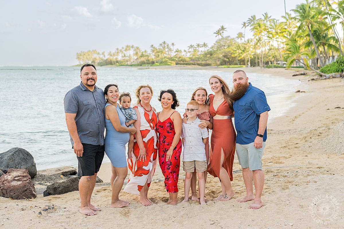 Waialae gave them the perfect backdrop: swaying palms, soft skies, and the soothing rhythm of the ocean. But what truly lit up these photos was the love they brought with them. Each generation, each sibling, each child, holding space for one another while honoring someone who meant the world to them. It was the kind of session that reminds you why we do this. Why photos matter.