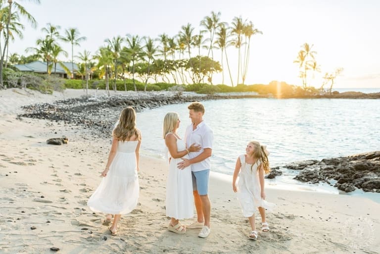 The Parkinson family brought pure joy to their Big Island family portrait session! Pauoa Bay Beach gave us soft sand, glowing sunset light, and a backdrop that felt almost too perfect, except it wasn’t, because they were busy making it their own. This crew is in the middle of building their dream home, which is
