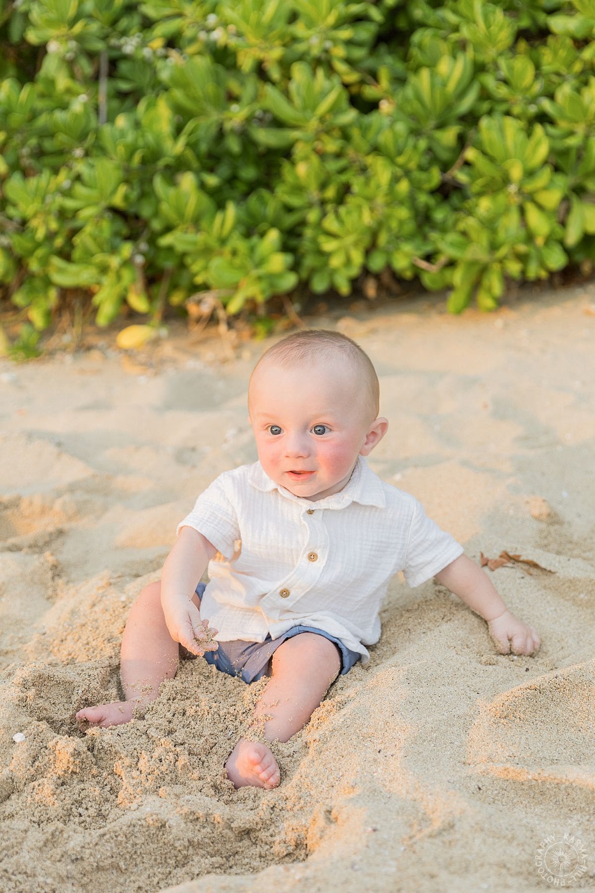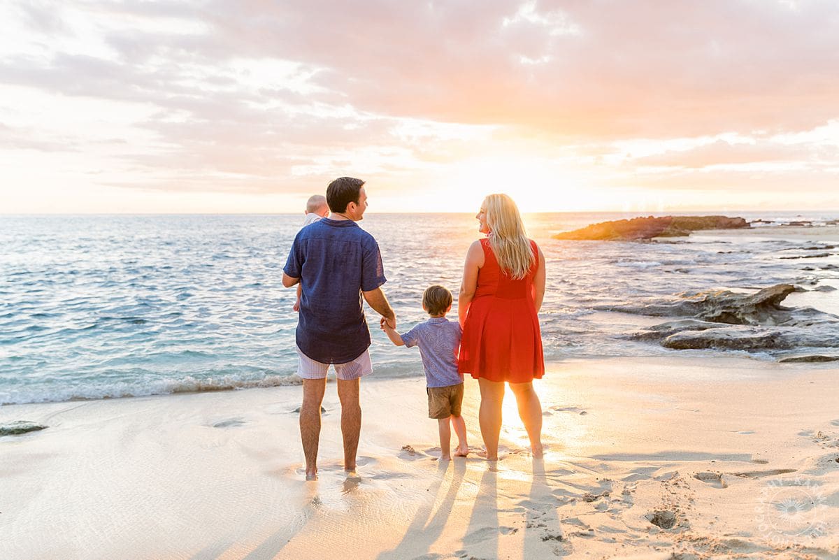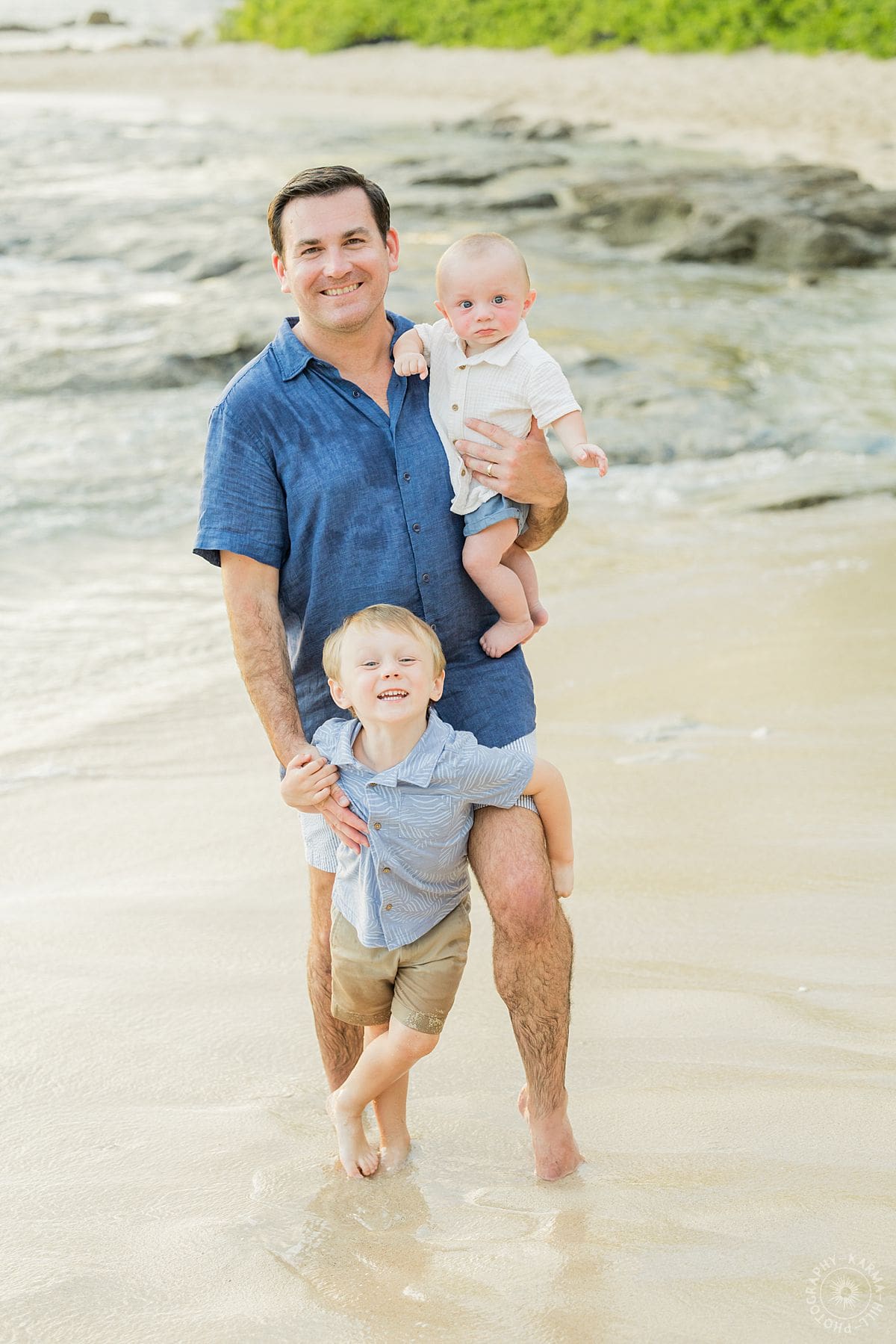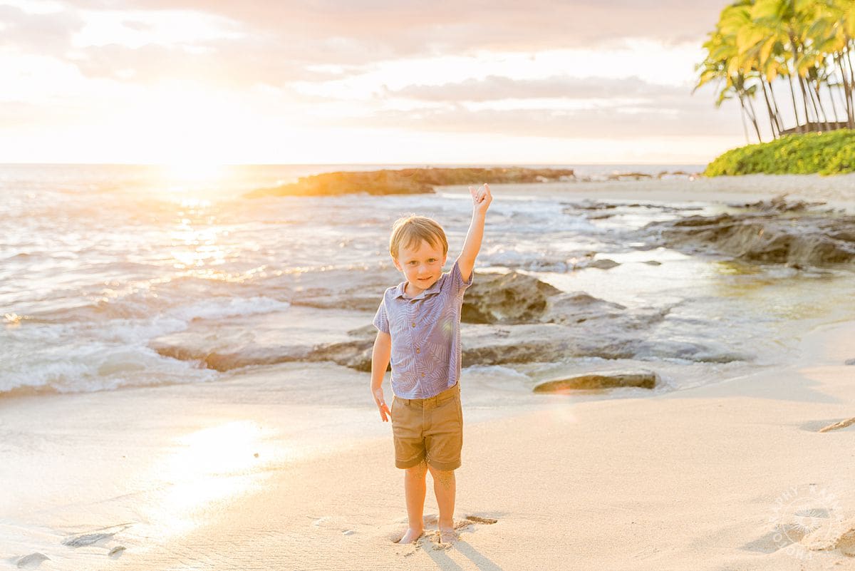 Then came the beach. And oh, what a beach it was, golden sand, gentle waves, and that glowing Hawaiian light that makes everything feel just a bit more magical. The Raspinos held hands, chased after Braden’s sandy footprints, and kissed their kiddos. It was so endearing to see! How adorable are their boys? They were the best sports when it came to posing for us!