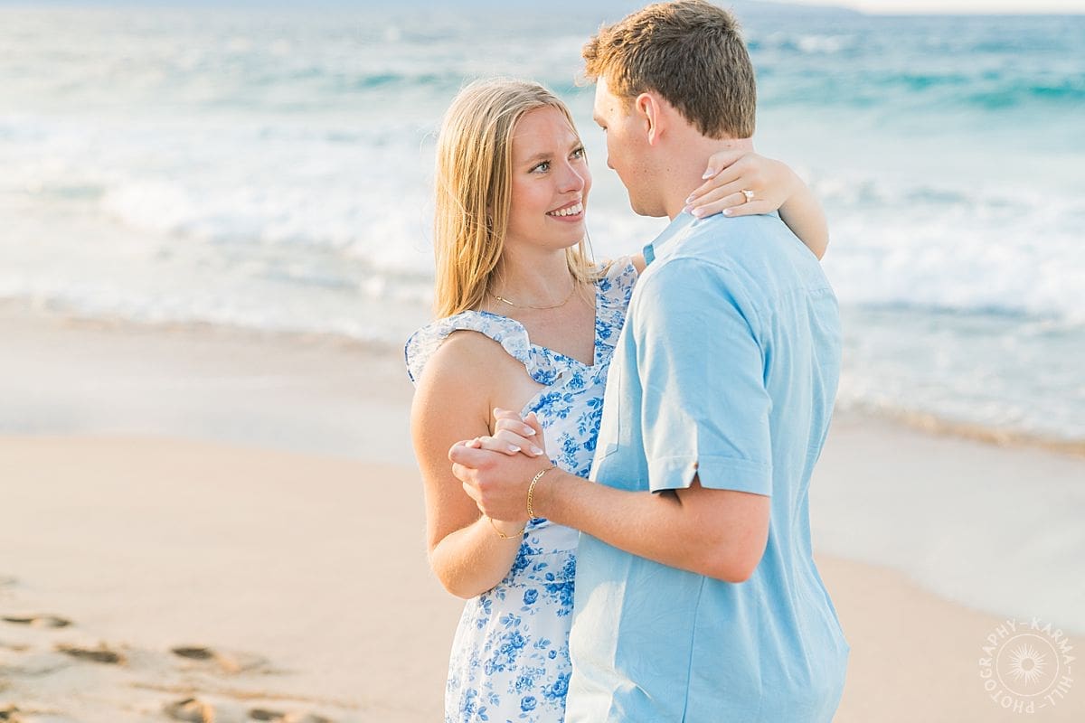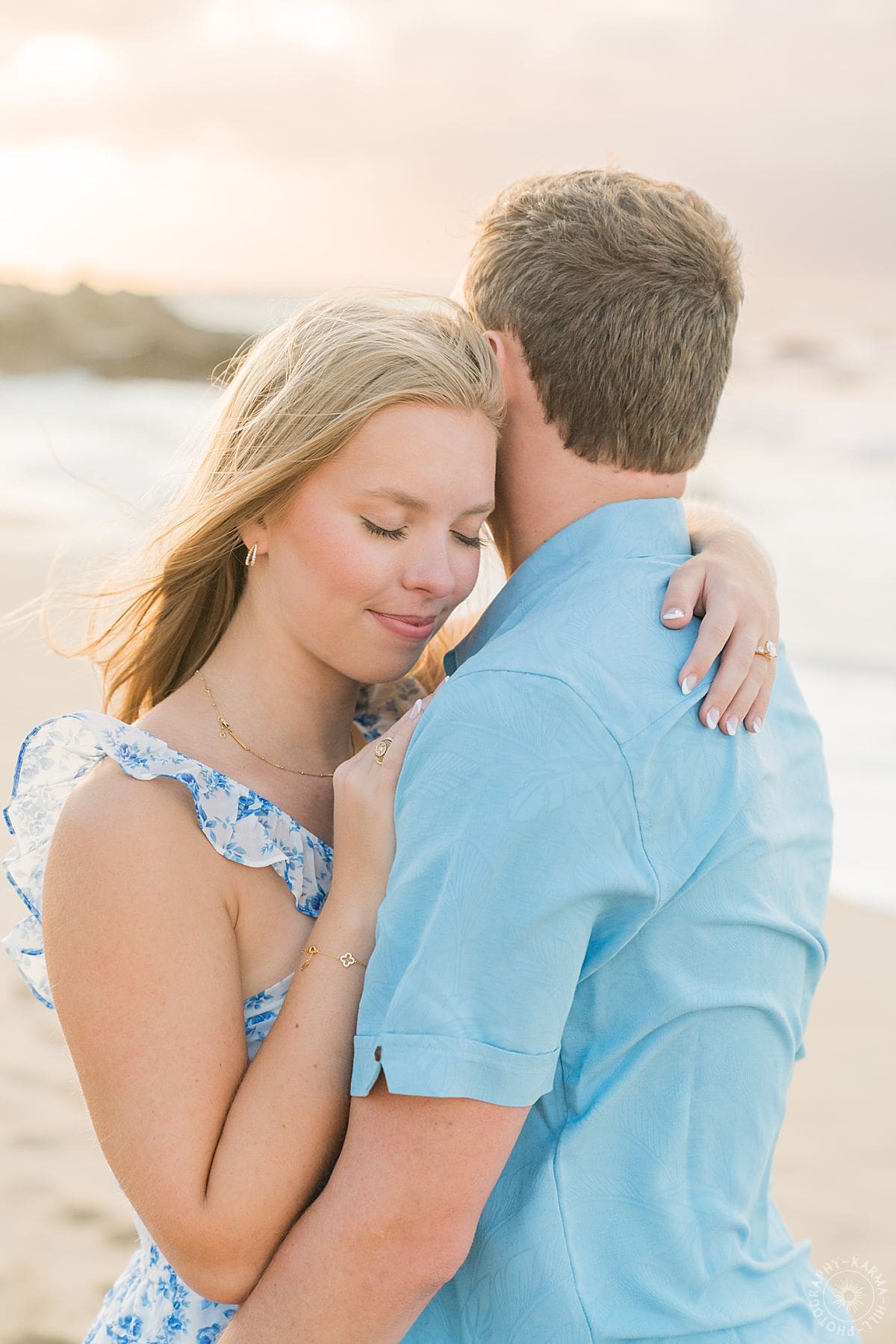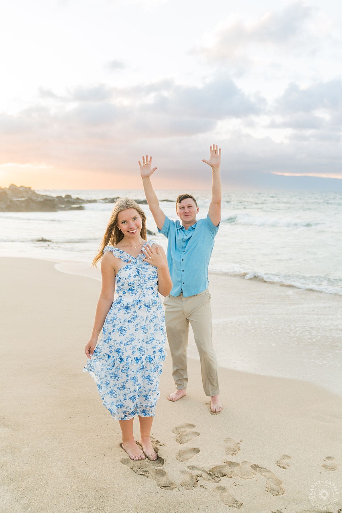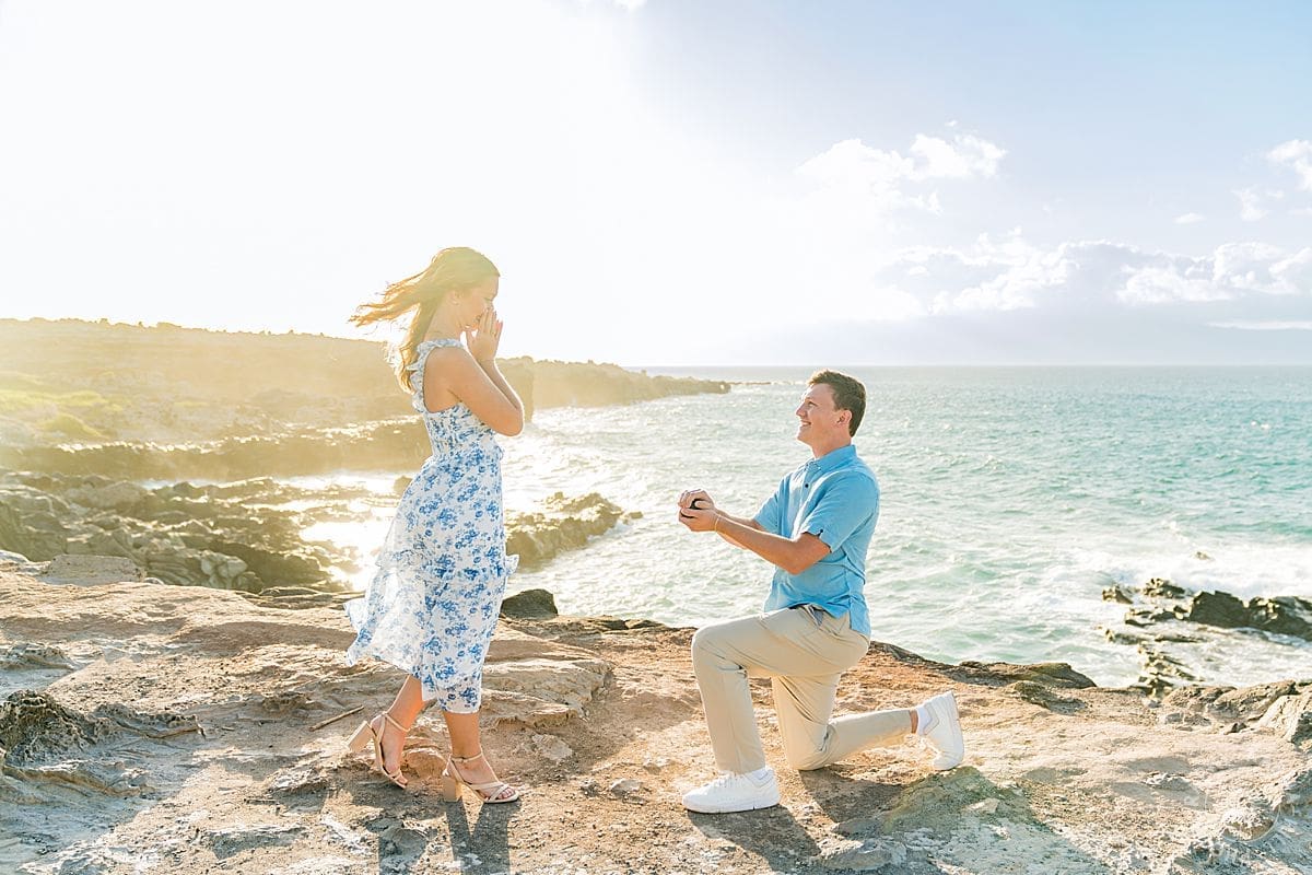 For their very first trip to Hawaii, Reese planned a secret two-day getaway to Maui with one goal in mind: to ask Kylie to spend forever with him. Together for 2.5 years after meeting in college, they’ve built a life of love and adventure, Kylie busy with nursing school, Reese with his job, and both of them treasuring beach vacations and photography as their shared happy place. So when it came time to propose, there really was no better backdrop than Maui’s dramatic cliffs, soft sand, and rolling waves. He planned it so smoothly with a “couple’s portrait” (so she could dress and look her best; wise move, Reese!) and then just when she least expected it…the moment happened!