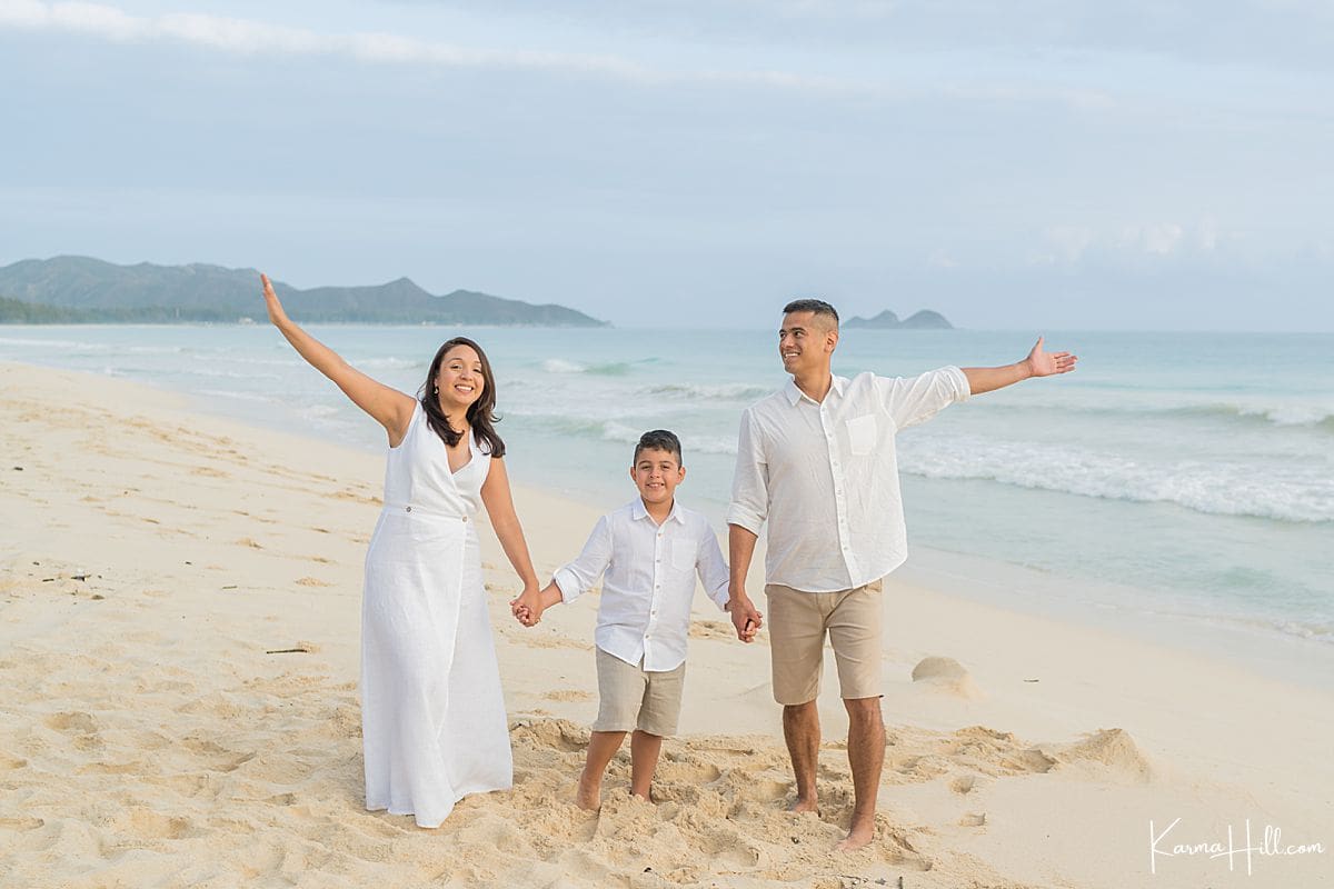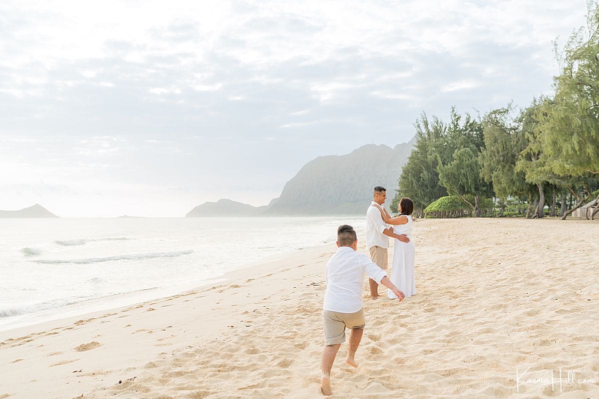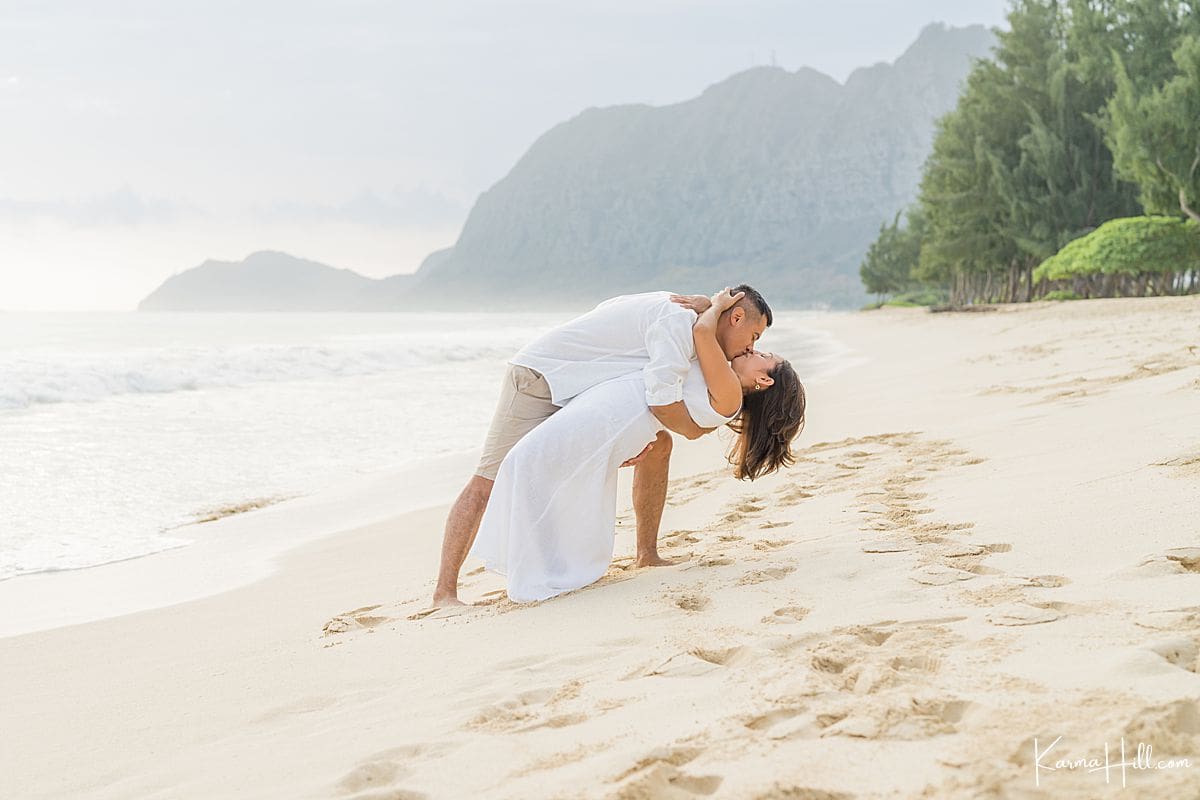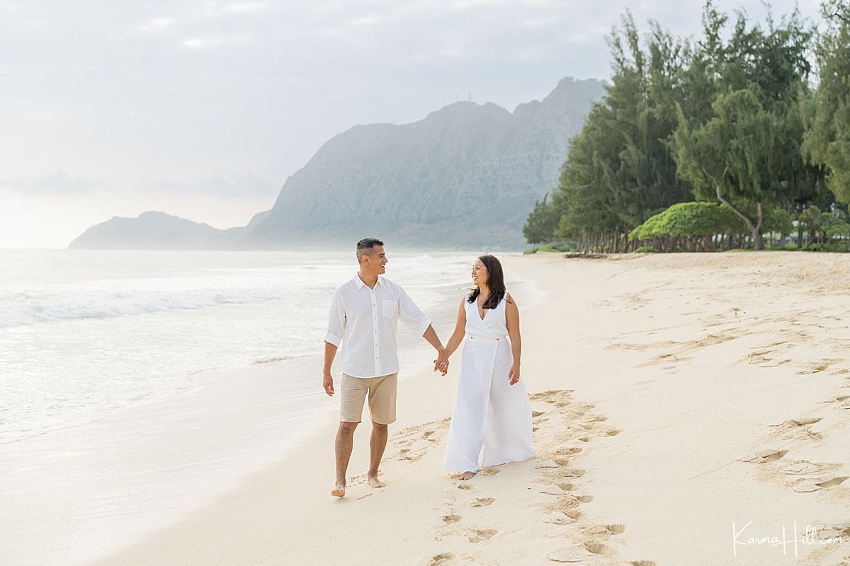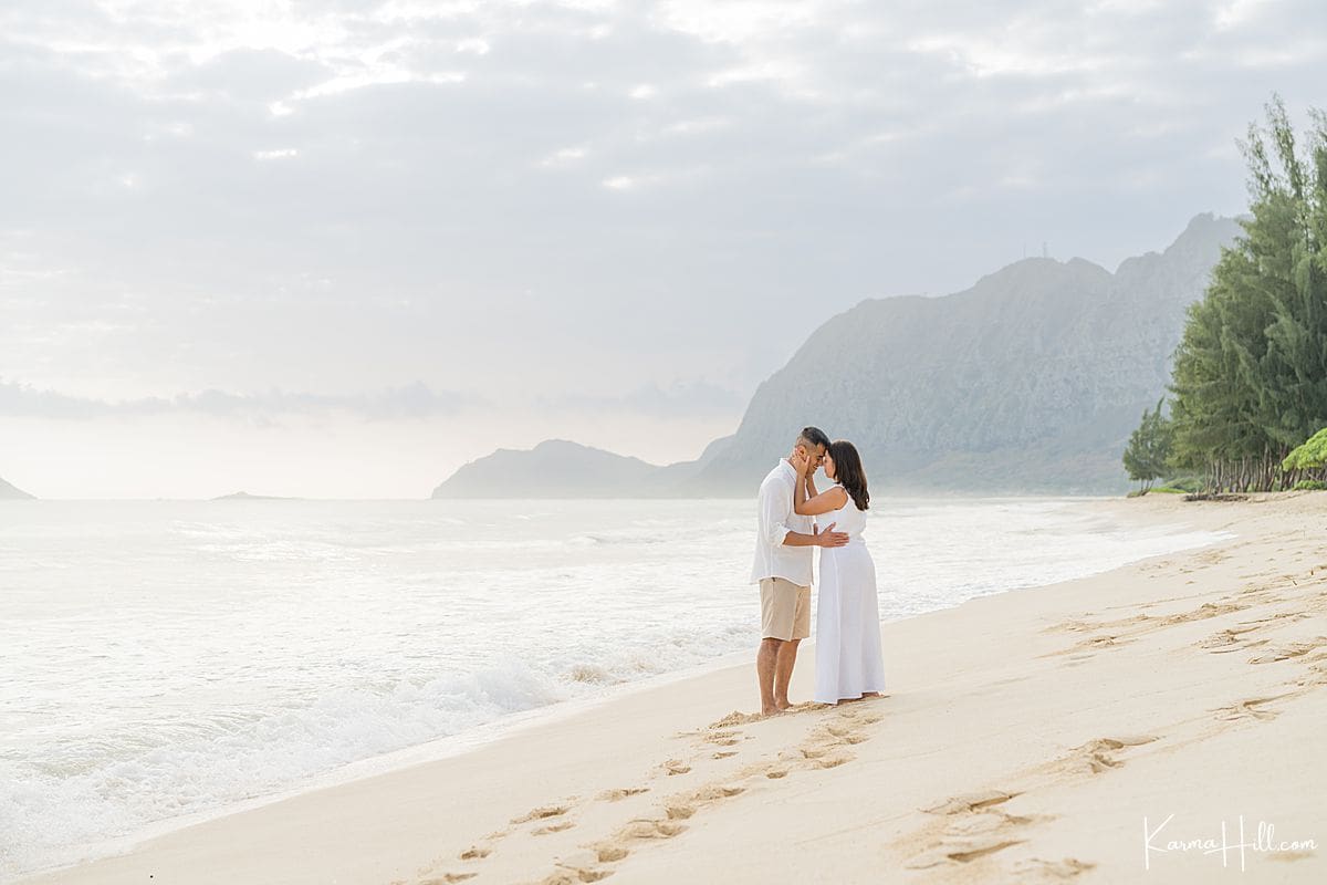 Dressed in timeless white, the Riveras looked absolutely radiant against the backdrop of Waimanalo’s turquoise waters and soft golden sands. The choice of white outfits added an elegant, dreamy touch to every photo, blending beautifully with the serene beach setting. It was as if they had stepped straight out of a postcard!