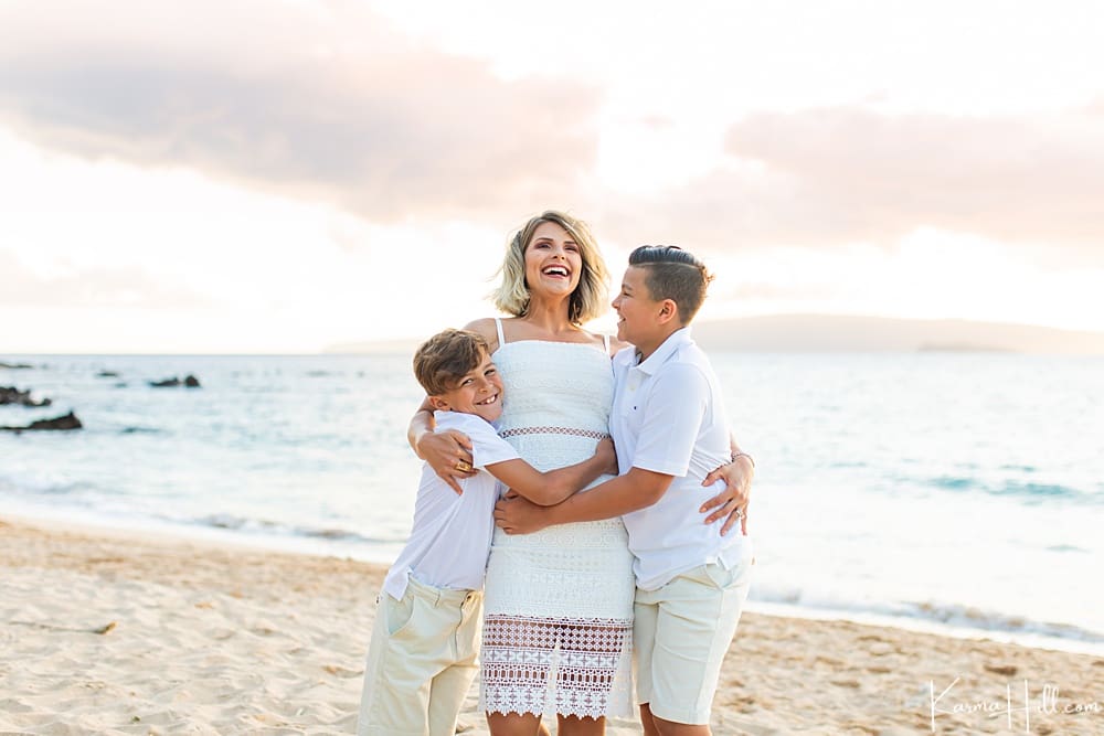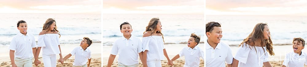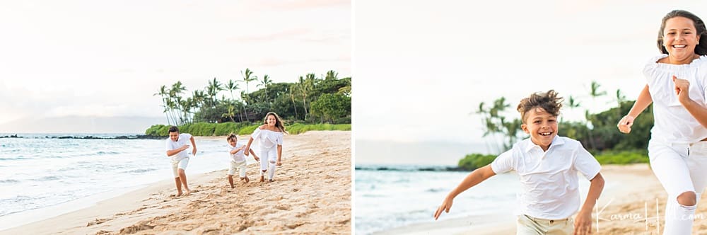 Being the Silvas’ Maui family photographer was fun and then some! We met up on Southside Beach, and from the moment the first photo was clicked, this Boston crew was sporting ear-to-ear smiles and clearly just enjoying the moment. And the kids had us giggling away! Striking poses, sticking out tongues, and chasing each other down the shore… when the kids are having fun, we’re having fun!