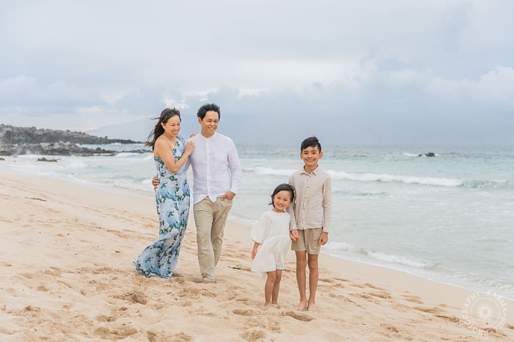 At Waialae Beach, the calmness of the water mirrored the serenity felt by this loving family. As they strolled hand in hand, their bond and closeness were palpable. Each step taken represented not only a physical journey along the shore but also a celebration of cherished memories and the marking of Chelsea’s milestone birthday.