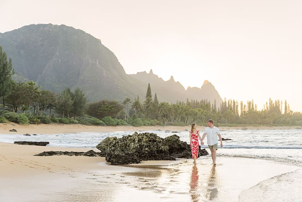 Spencer and Taylor’s Kauai proposal portrait session at Haena Beach on the North Shore of…