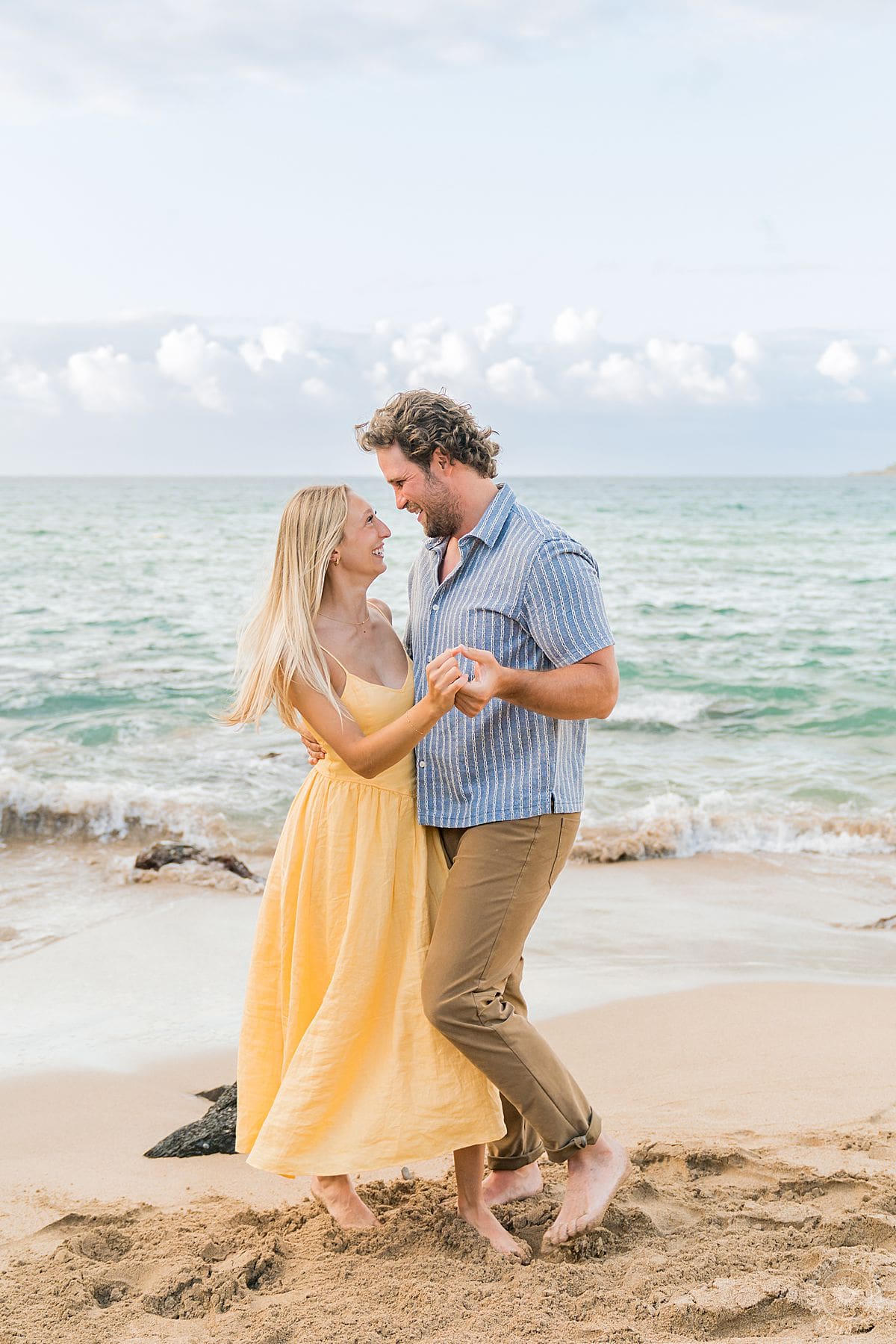 After the big “yes!” (cue our collective swooning), the two were pure magic. From playful piggyback rides to barefoot beach dancing and those wind-swept, “can-you-believe-we-just-got-engaged?!” looks, these two were everything. The chemistry? Off the charts. The vibes? Tropical rom-com meets golden hour bliss.