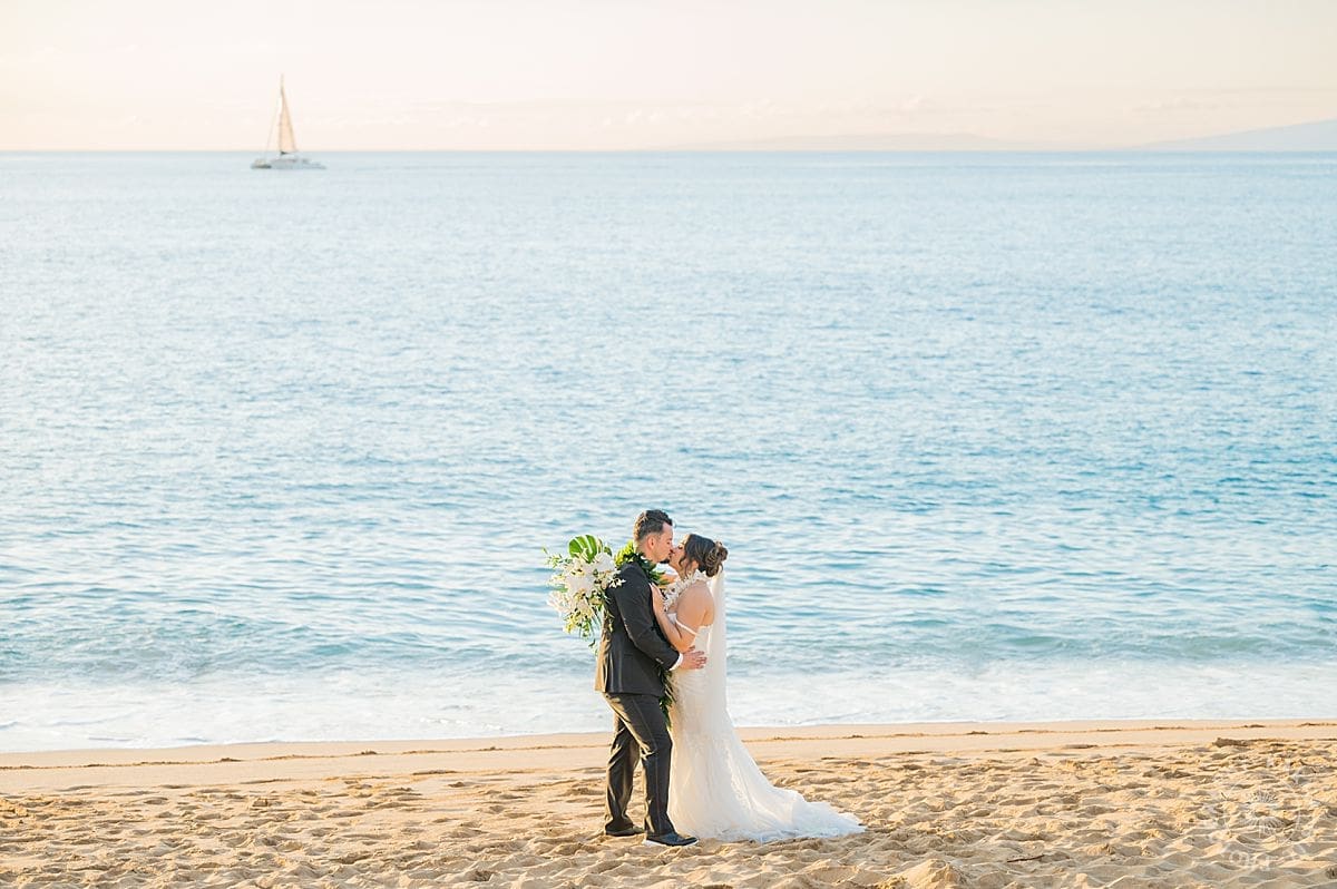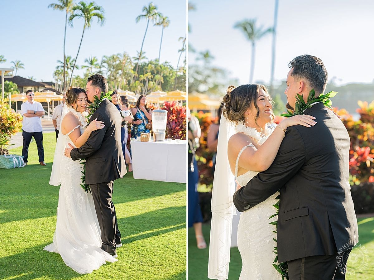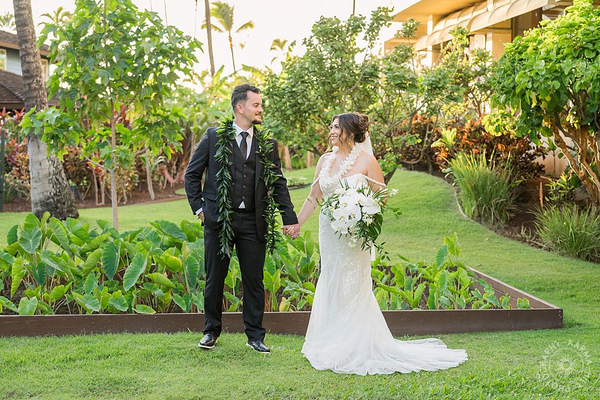 Their newlywed portraits were a true reflection of why Maui wedding photography is so special: romantic moments, quiet glances, and that unmistakable ‘just-married’ glow, framed by Maui’s golden light. There are so many beautiful locations for newlywed portraits around the grounds of Royal Lahaina Resort, from the lush greenery to the beach out front! These two just looked so happy and truly lit up our lens with love and joy.
