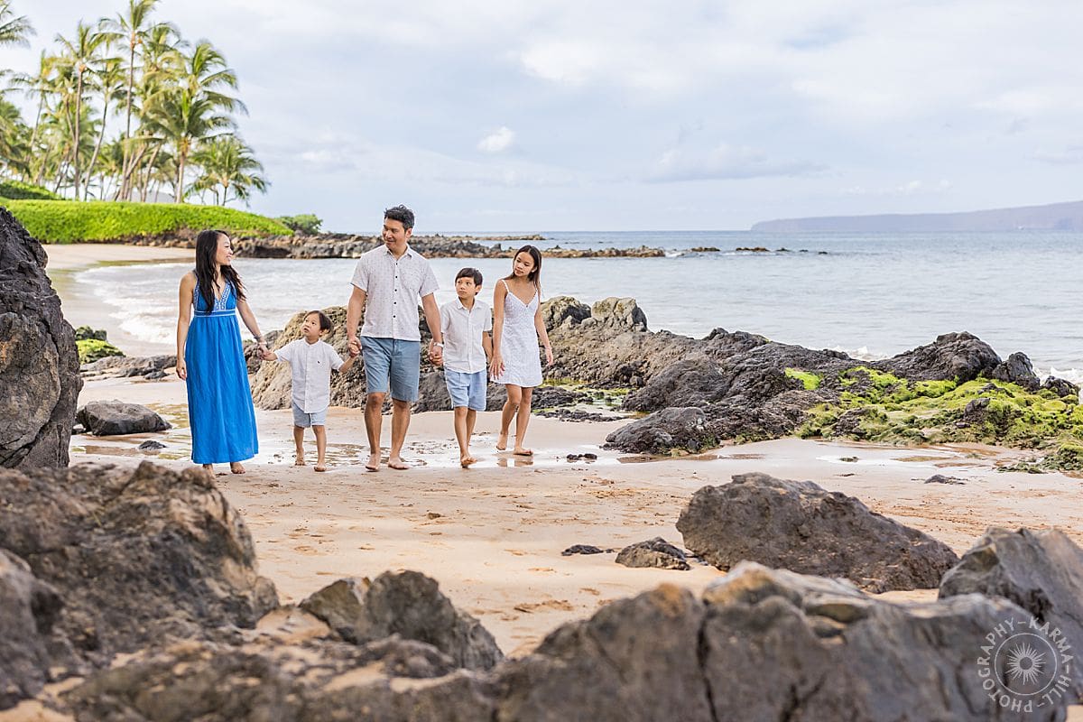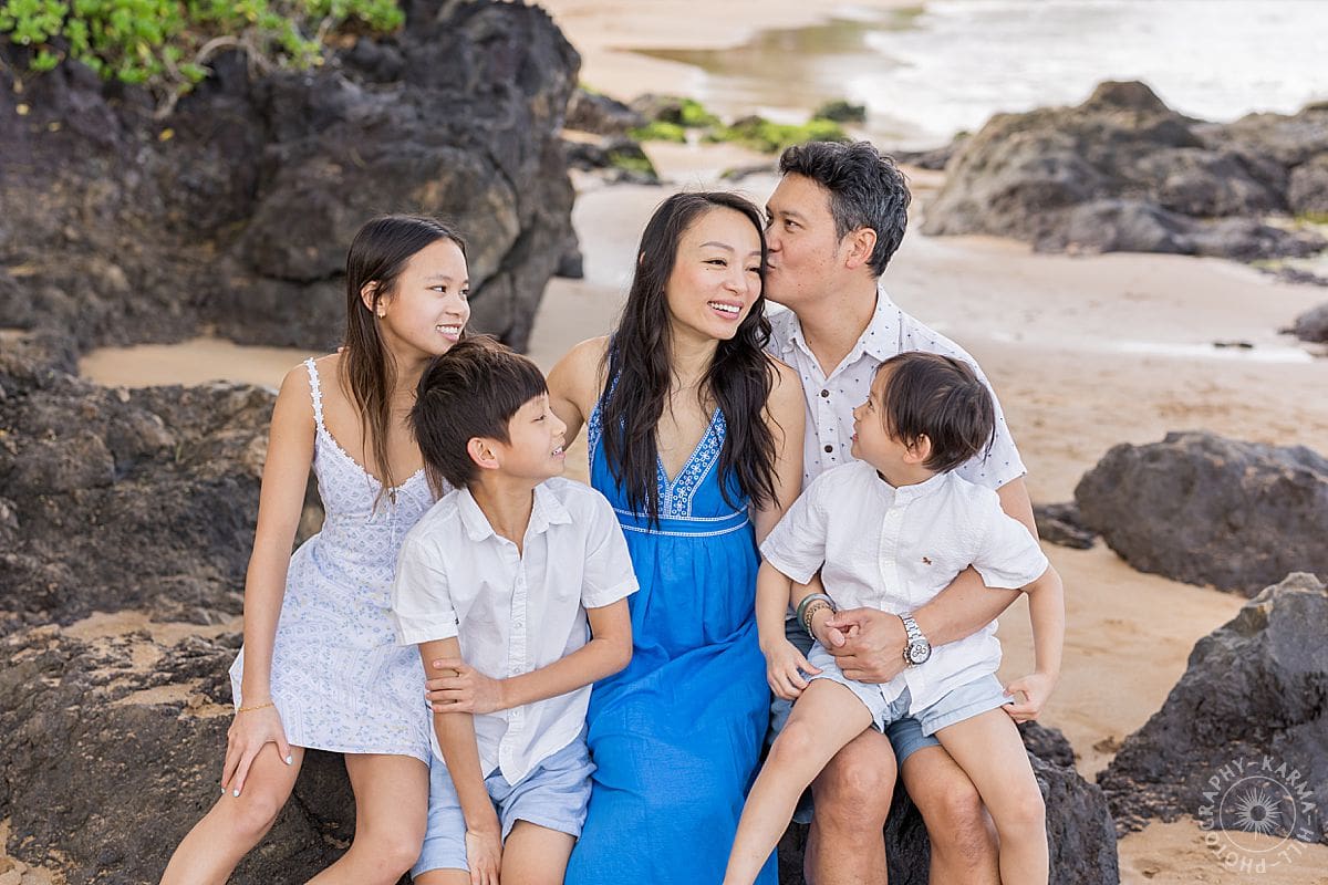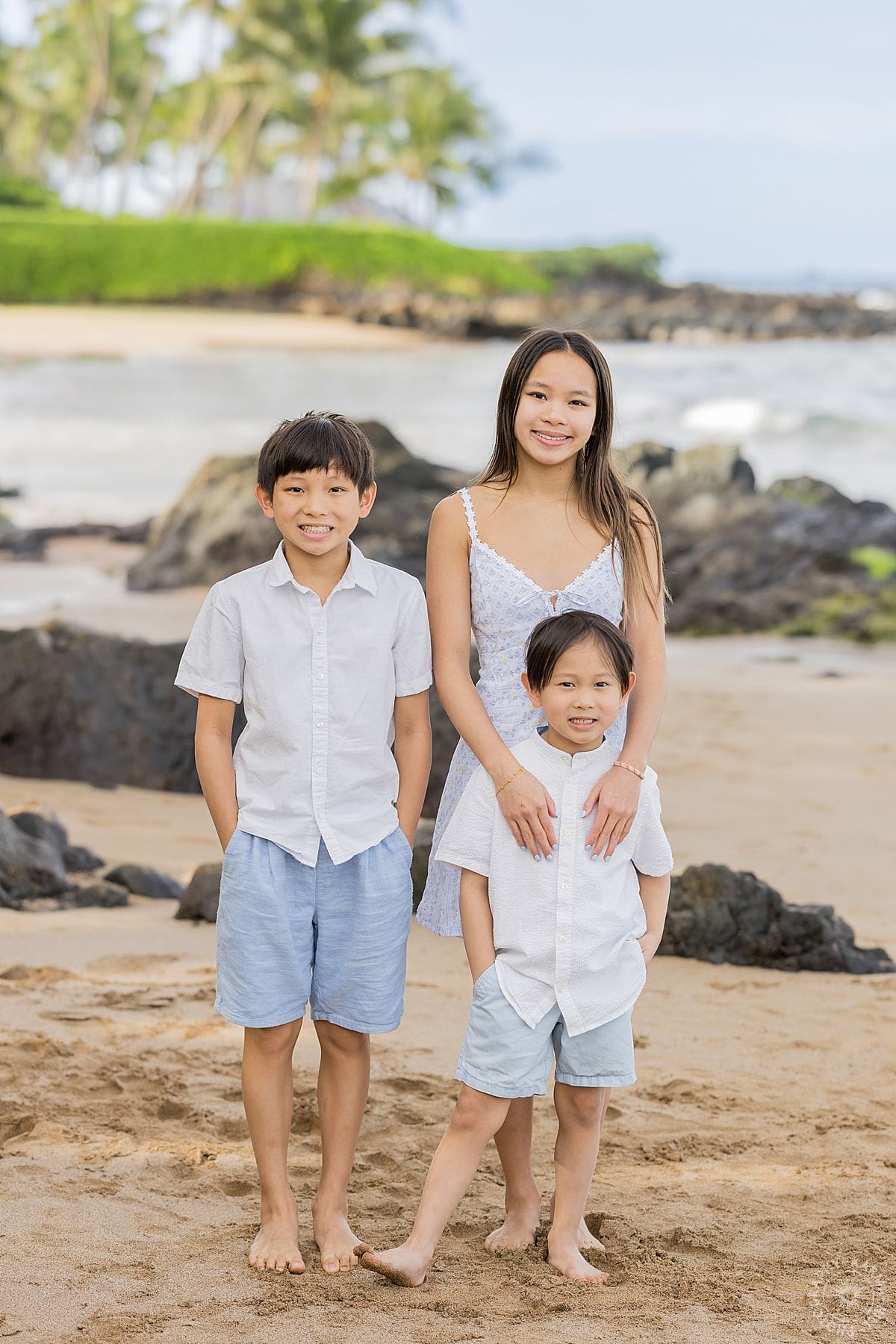 There was a natural rhythm to their time together, moving from playful moments on the rocks to gentle walks along the water as the light softened. Dad lifted the kids with ease, and everyone leaned into each other like second nature, while the ocean stretched endlessly behind them. Meanwhile, their connection never felt posed, only lived in and real. These Maui family portraits captured not just a visit to the island, but a celebration of where they have been and everything they are still creating together.