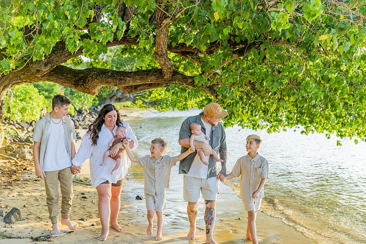 When this sweet family told us they were coming back to their favorite island for a Kauai family portrait session, we knew it was going to be something special. Add in the fact that they just welcomed surprise twins—yes, twins!—two months ago, and we’re basically talking about superhumans in vacation mode.