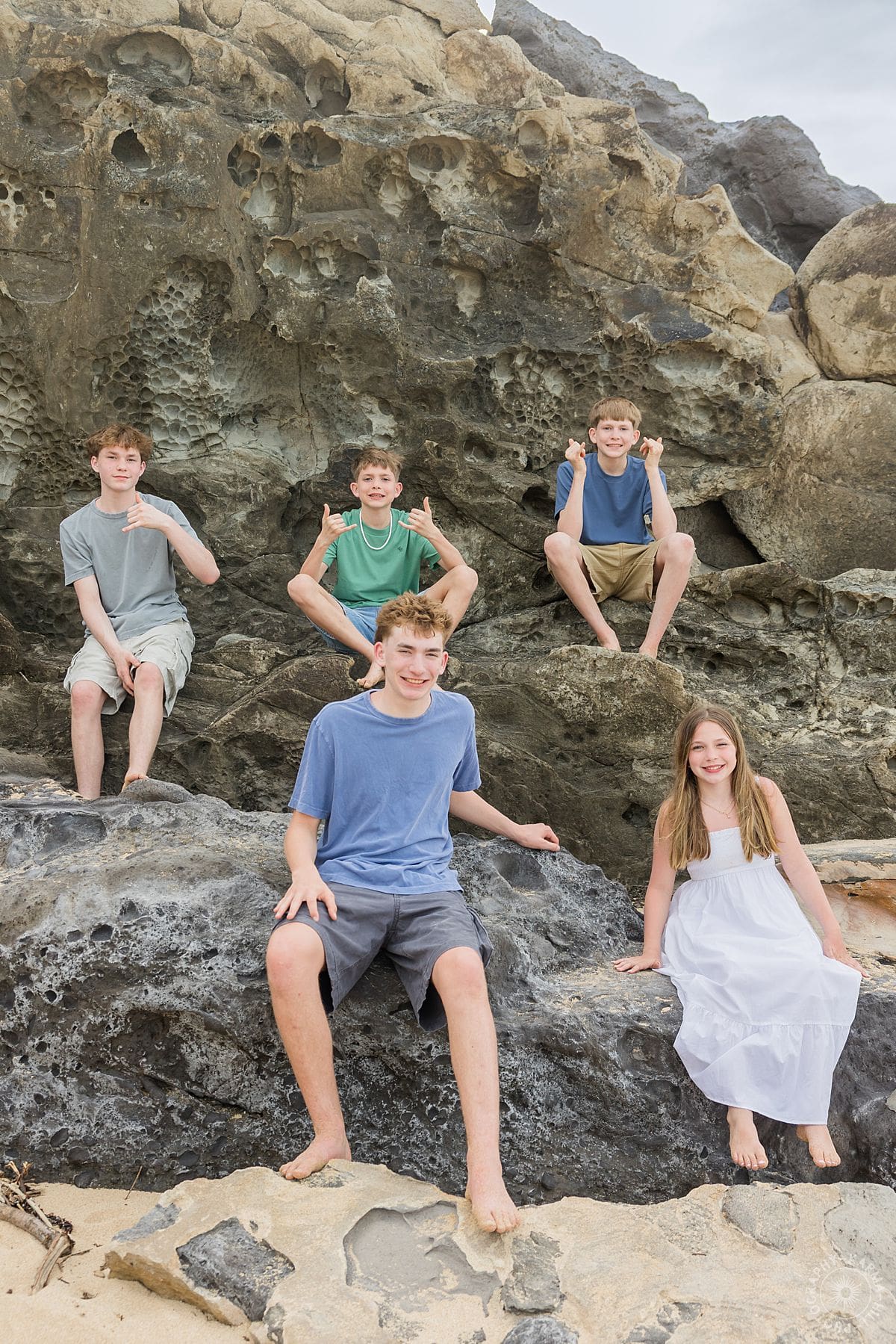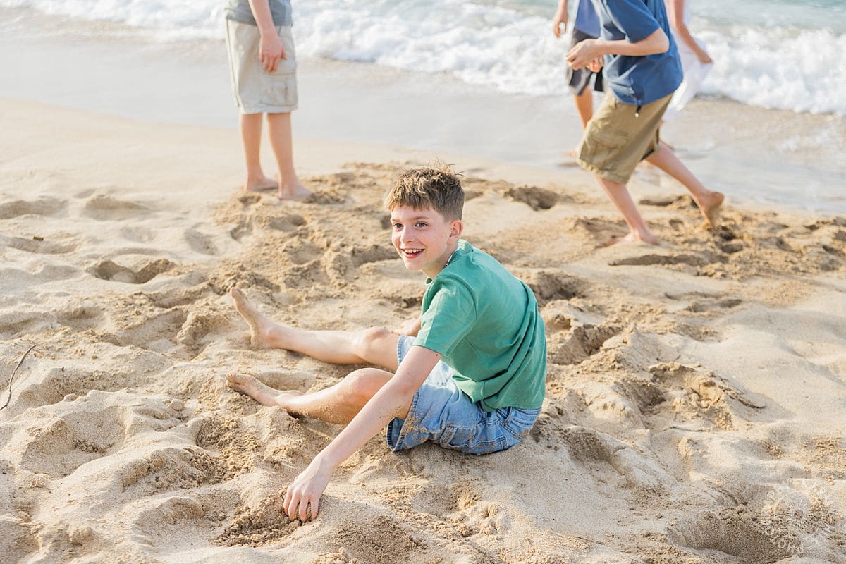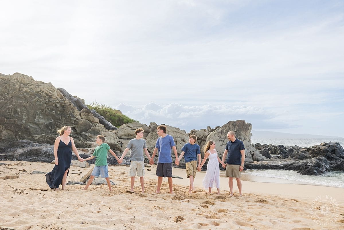 There is something effortlessly joyful about Maui family portraits at Ironwoods Beach, and the Wightman family brought that energy to life from the very first moment. With five kids, including one sweet sister surrounded by her four brothers, the session felt like a perfect mix of playful chaos and genuine connection.