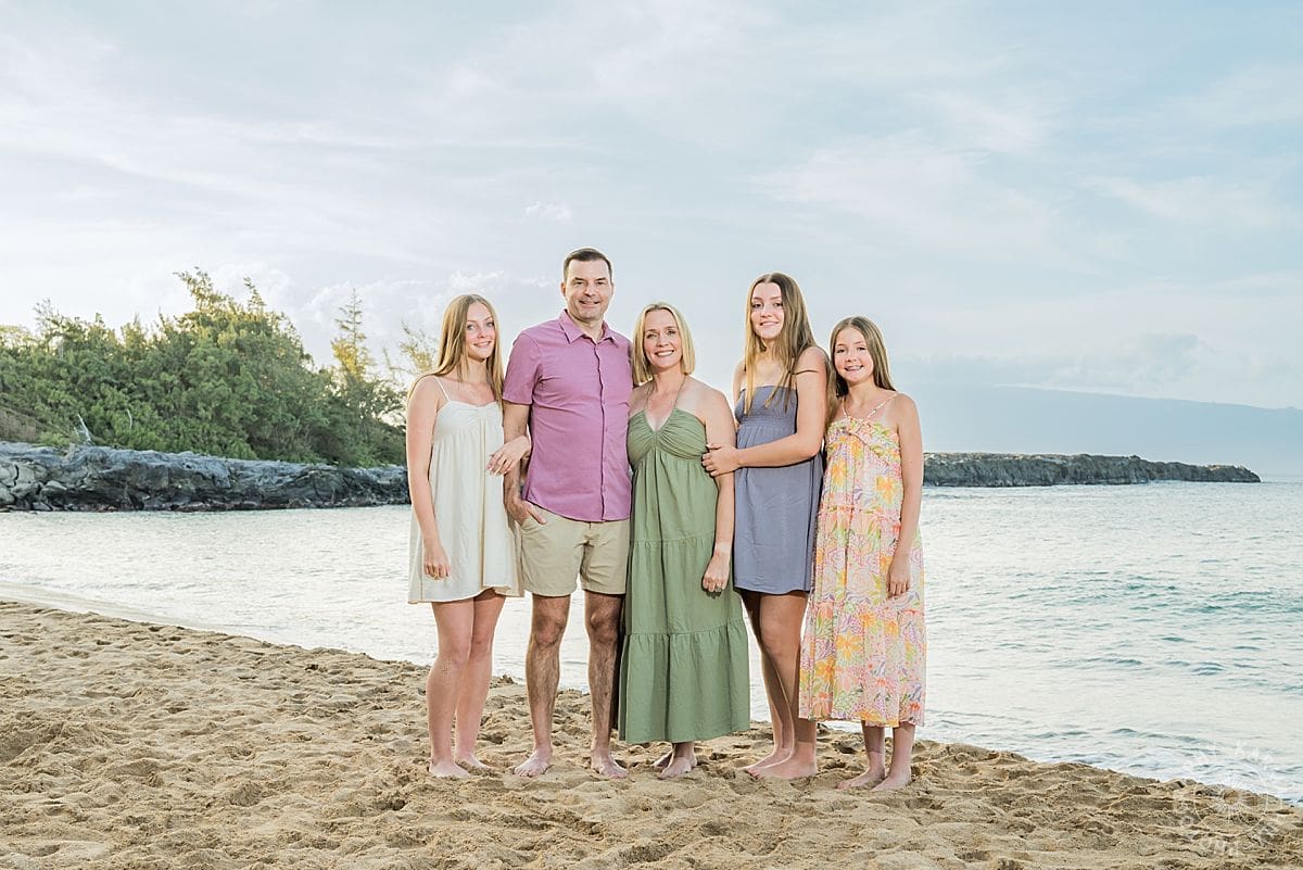 Visiting Maui isn’t new for them, they’ve been here several times, but something about this trip felt extra special. Maybe it was celebrating Thanksgiving on an island wrapped in golden light. Maybe it was watching their three daughters, Reagan (17), Reese (14), and Remi (12), smile their way through the session. Or maybe it was simply having the vast Pacific behind them instead of the foothills and mountains of Idaho. Whatever it was, the moment felt sweet, warm, and entirely theirs!