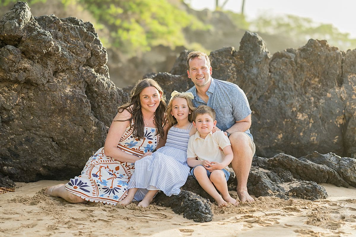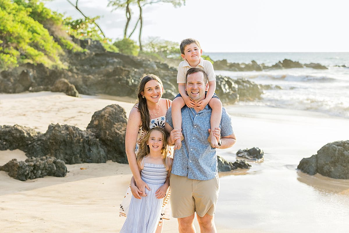 Maluaka is one of those places where the golden light hits just right, wrapping around you like a soft blanket and making everything feel like a movie scene. As the sun dipped lower, we snuck in those golden hour shots that always feel like magic. It couldn’t have been more perfect for their Maui family portrait!
