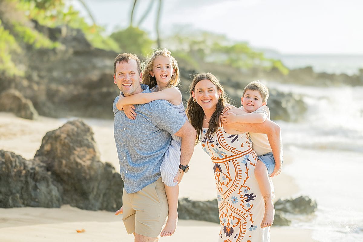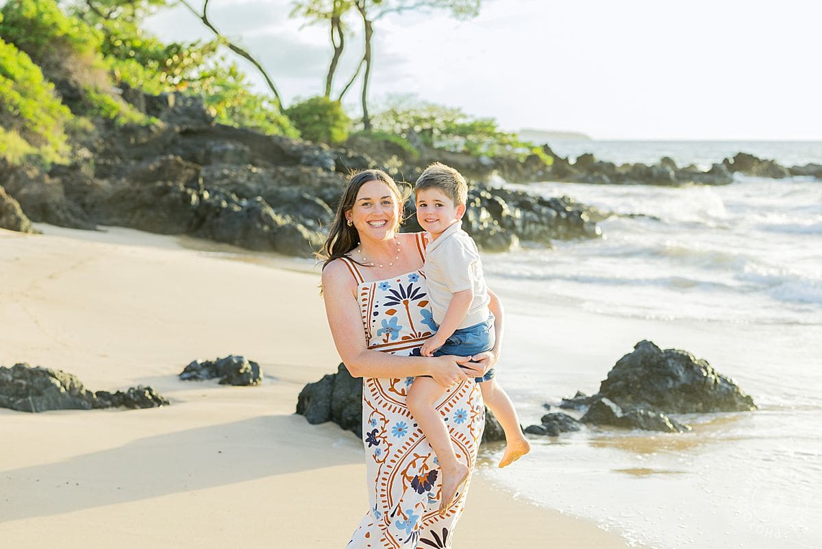 Maluaka Beach gave us the perfect mix of rugged lava rock, soft sand, and that glowing morning sun. From piggyback rides to playful chases, every frame told the story of a family who loves well and laughs freely.