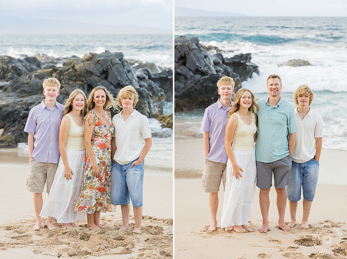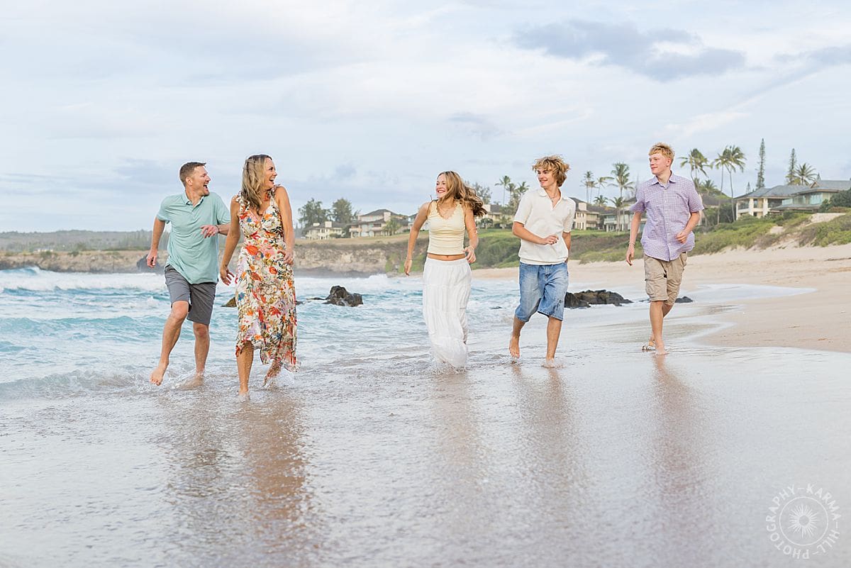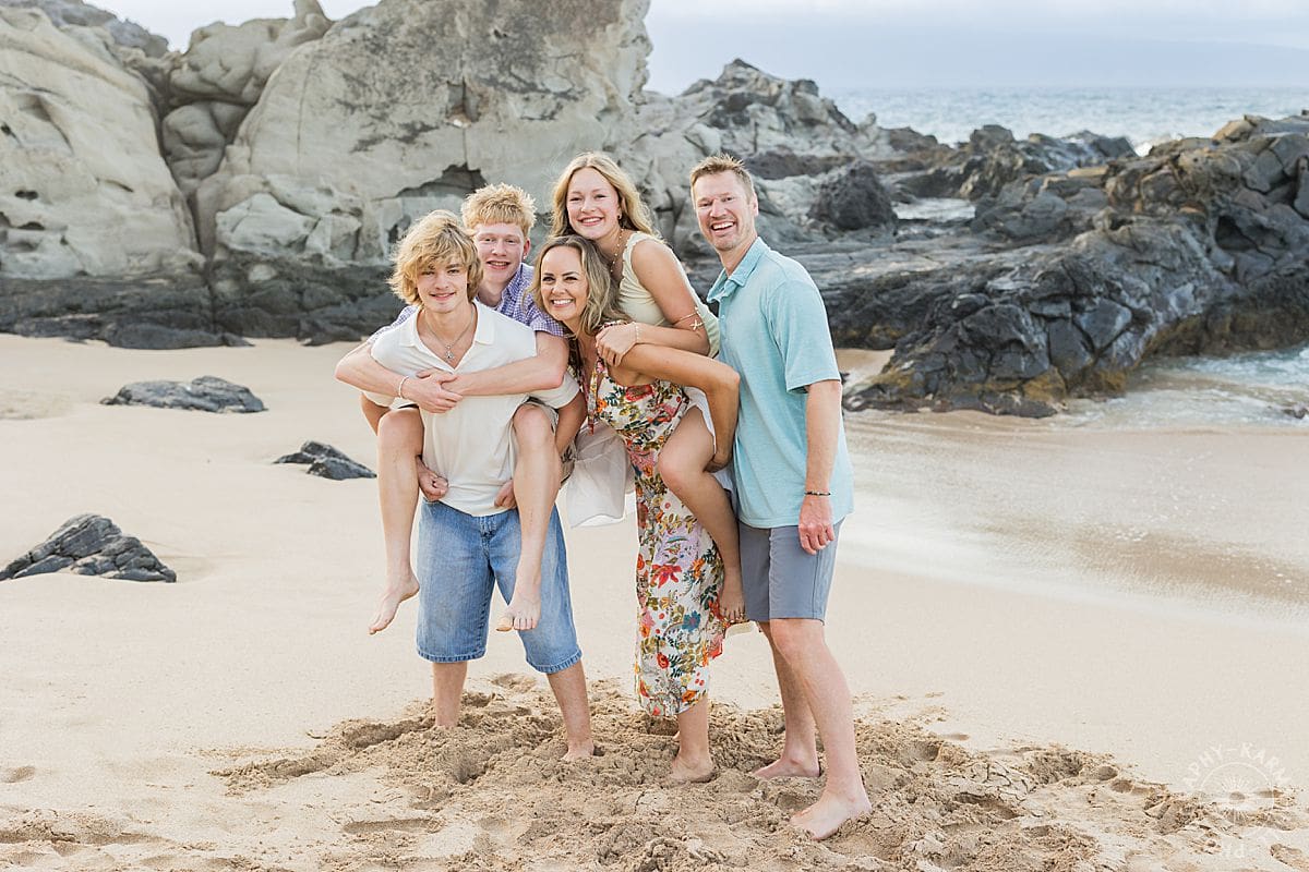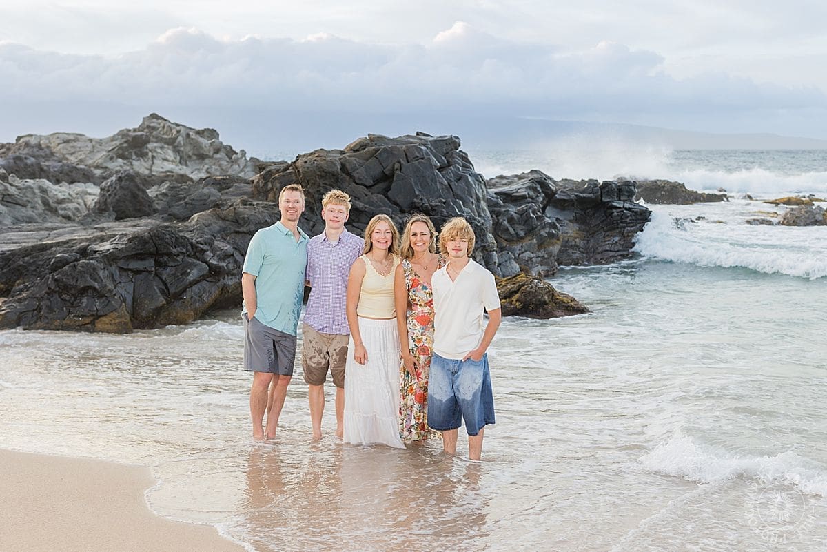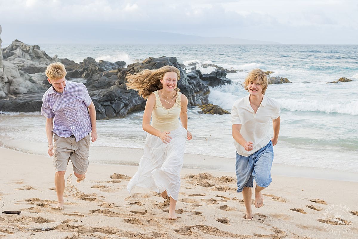 Instead of stiff poses or forced smiles, they did what families do best: played. The teens splashed in the surf, laughed as the waves chased their ankles, and forgot, just for a moment, that a camera was nearby. Those candid moments became the heart of their Maui family portrait: movement, laughter, connection.