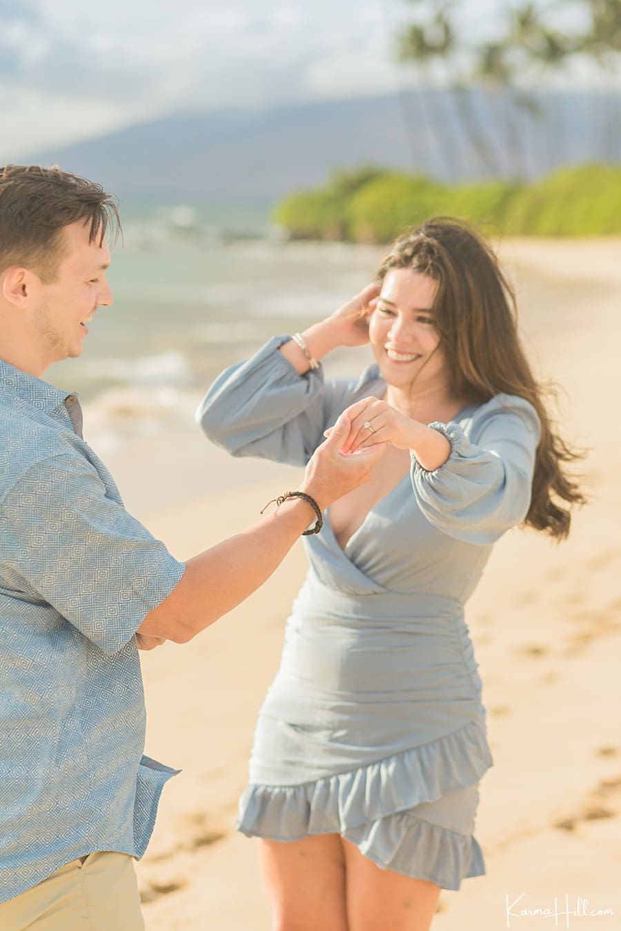 Zane and Valerie first met ten years ago in college while living in Portland, Oregon. When they felt the time was right, they began dating. Currently, they have been together for about eight years! Our lovely couple is most excited to announce their engagement to their loved ones while showing off the ring. In the future, they plan to have children and share their Maui proposal portraits with them!